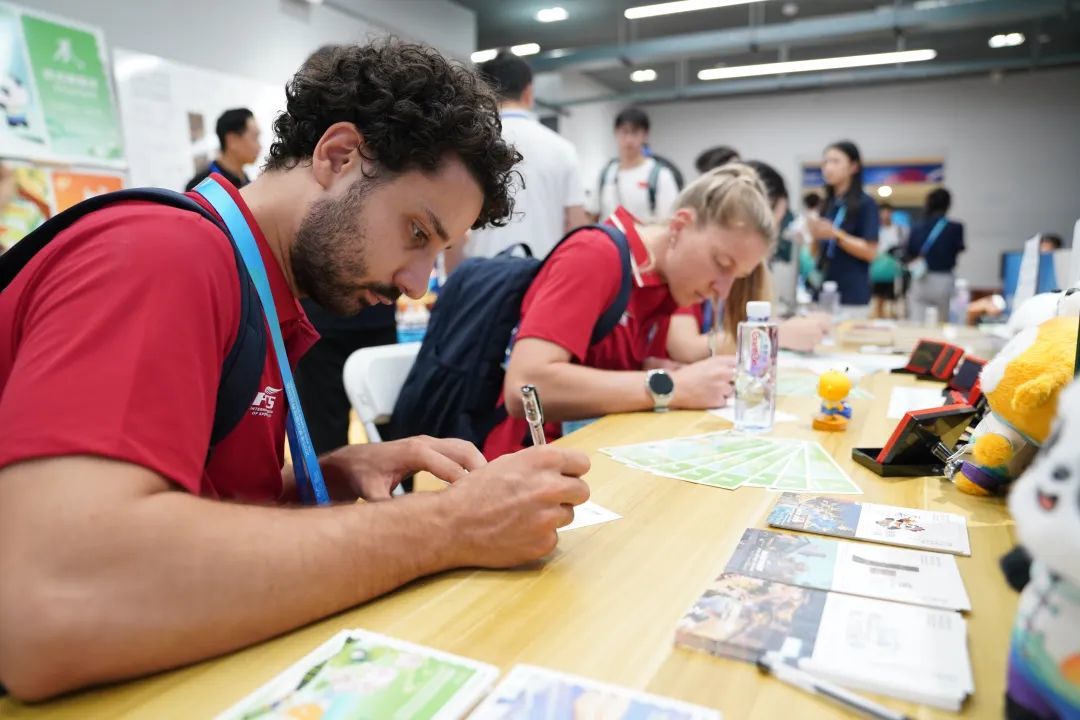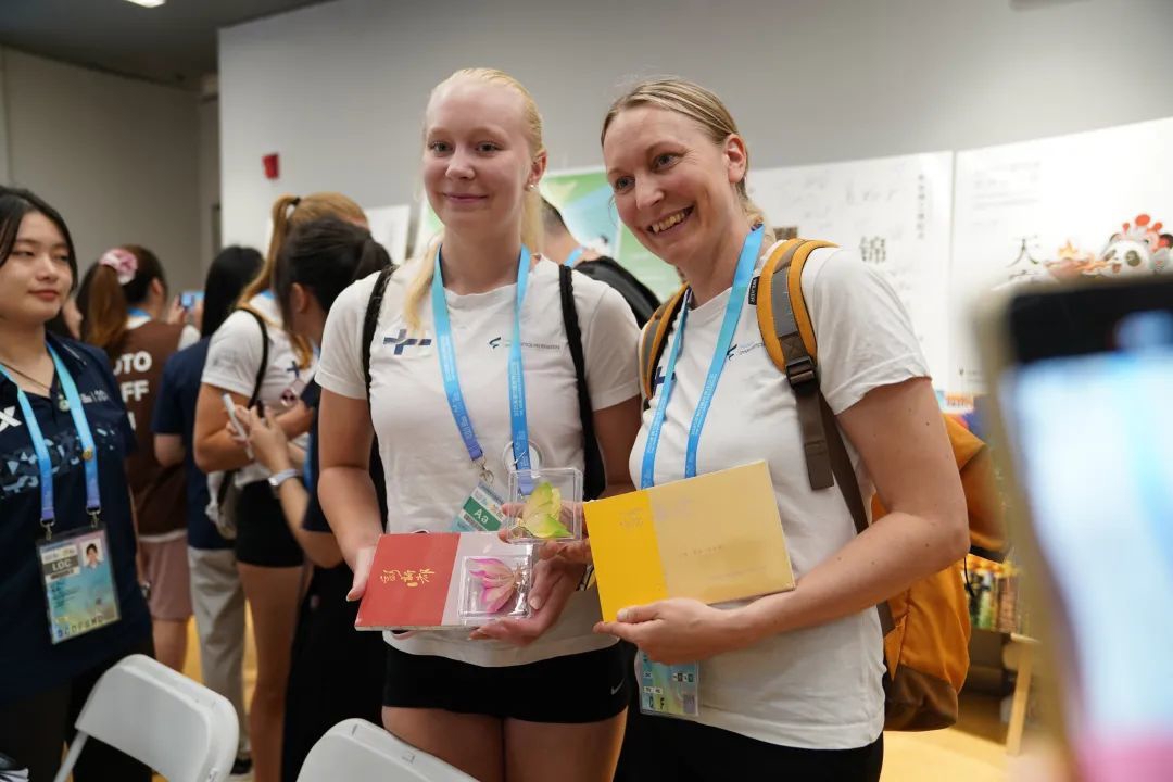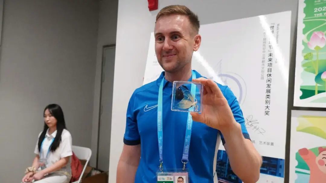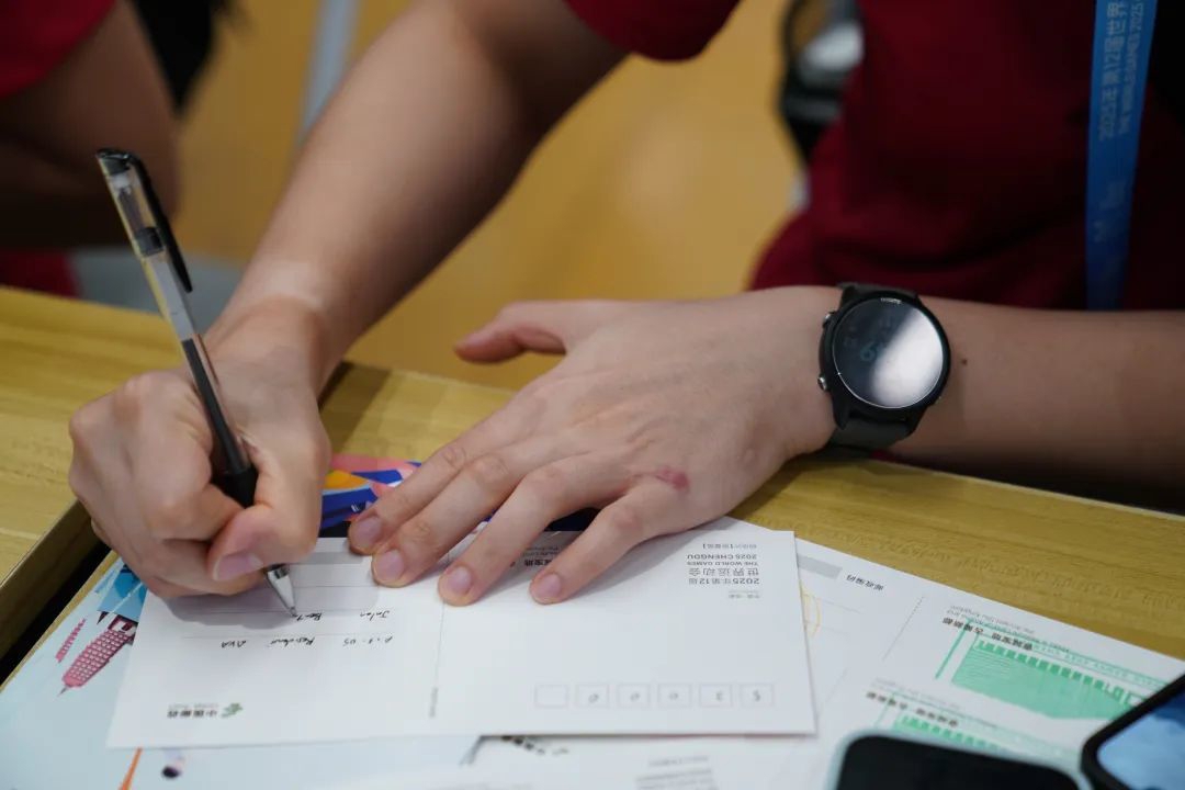 当意大利轮滑队队员将写给家人的明信片投入邮筒时,新加坡国家男子垒球队队员正对一只新繁棕编蝴蝶爱不释手。而中国国家男子软式曲棍球小将王子涵则兴奋地向记者展示盖满赛事印章的纪念卡片。