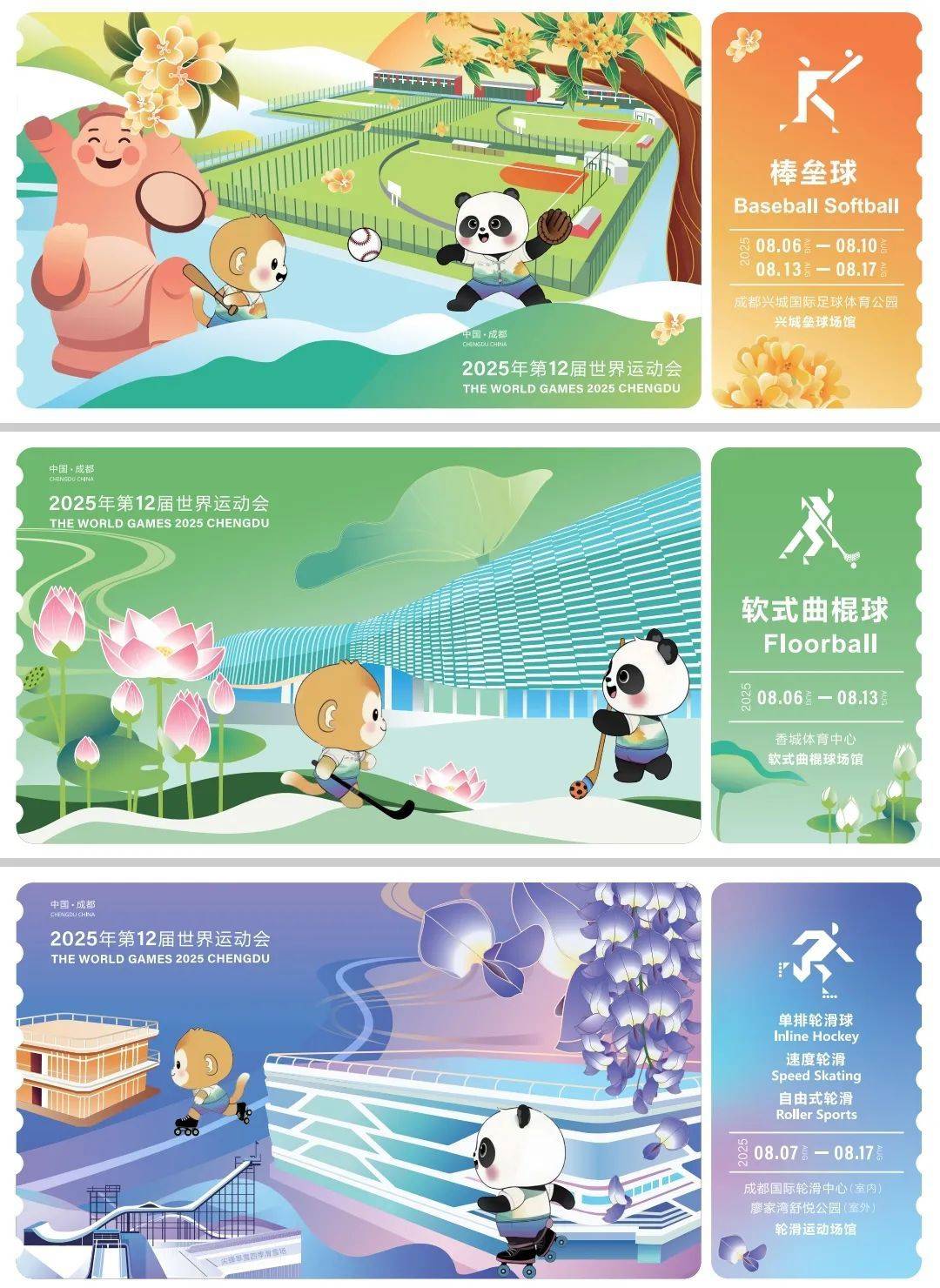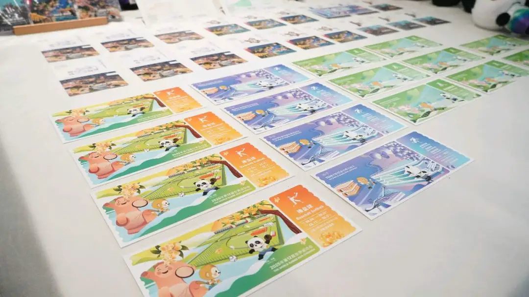 与场馆纪念套装相呼应,另一组明信片则聚焦新都锦门、天府沸腾小镇、超线公园三处地标。