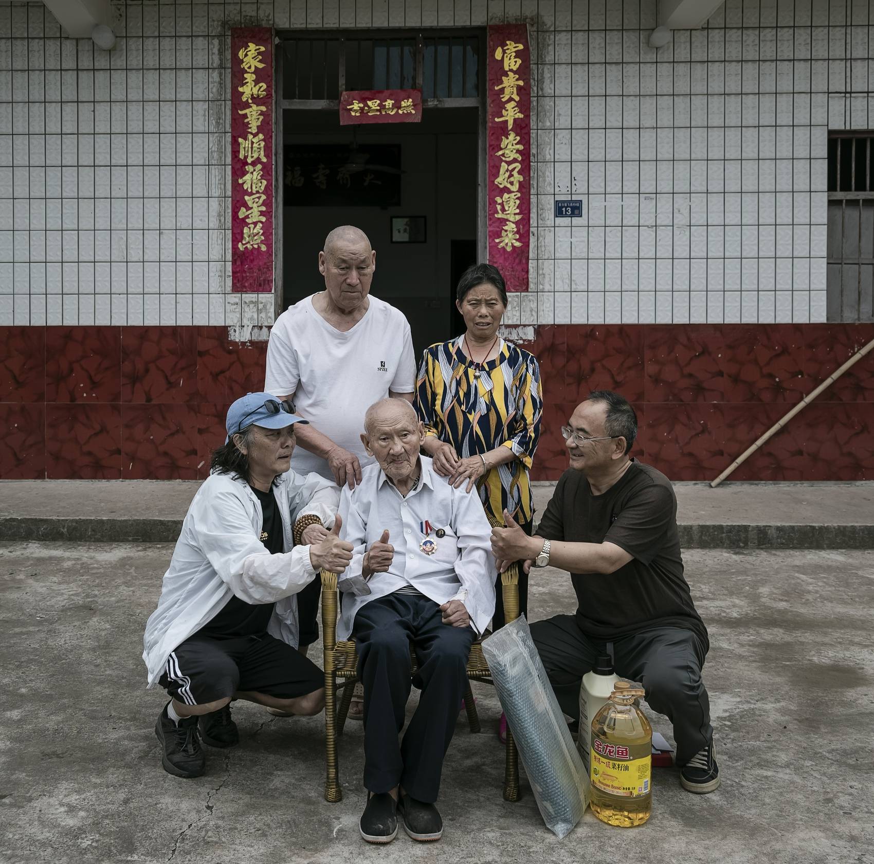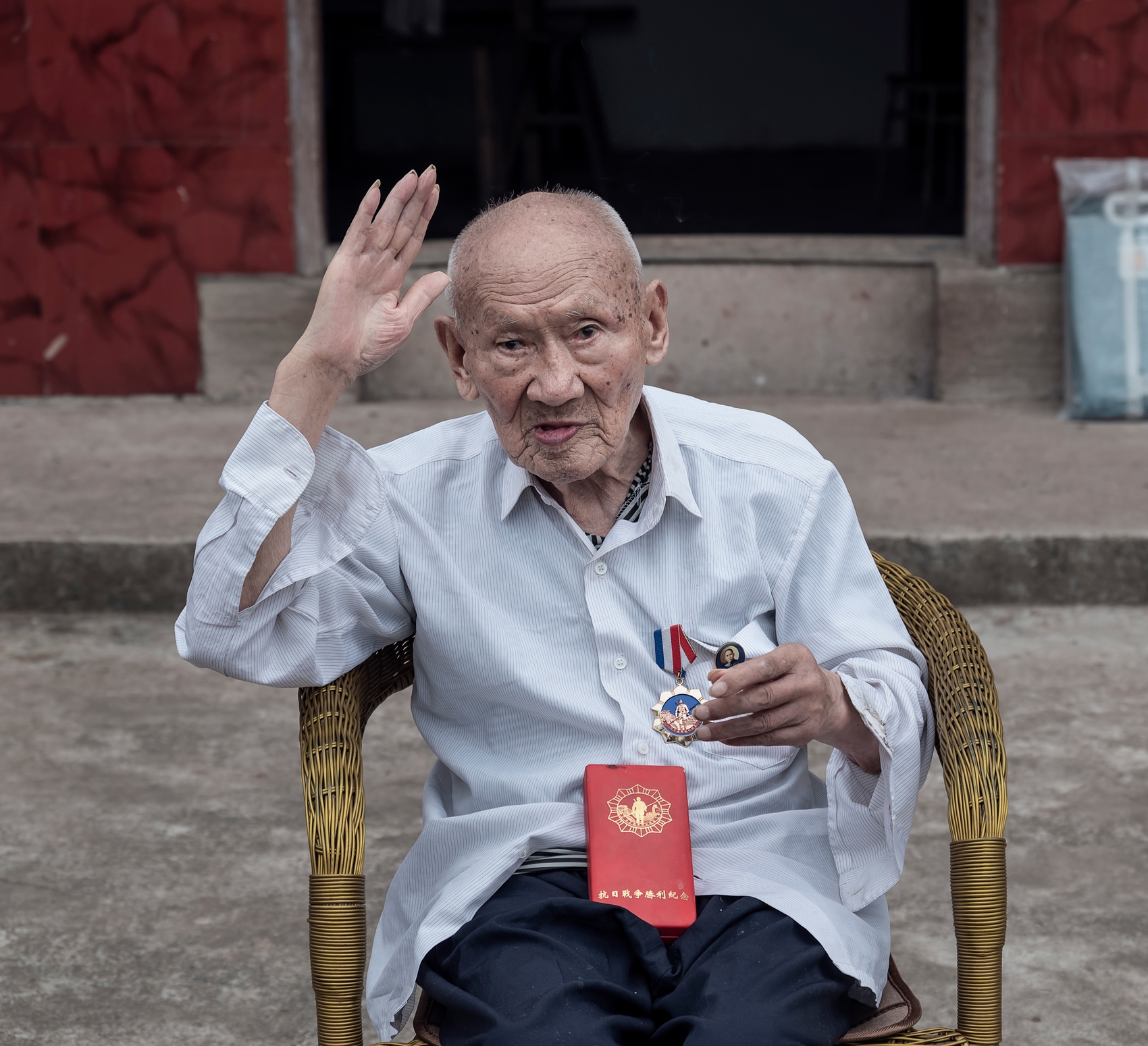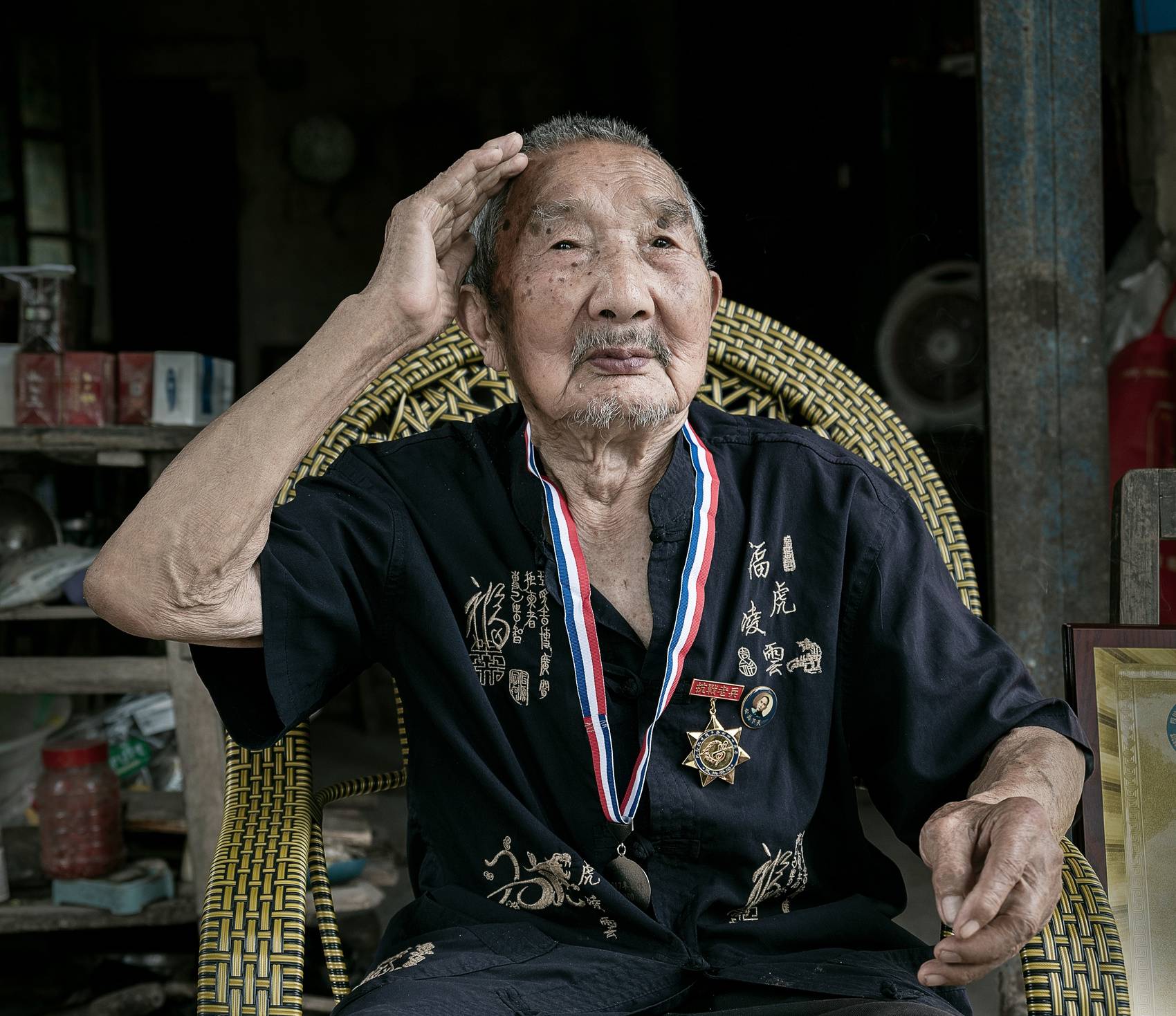 翻阅着一张张数字照片,摄影师总是回想起那个瞬间——为柏令和老人拍完照后,忙着收拾设备准备离开时,老人突然喊住他们:“等一下!”他转身从屋里取出一个布包裹,里面是多枚奖章。“帮我跟这些奖章合个影吧,说不定明年就戴不了了。”