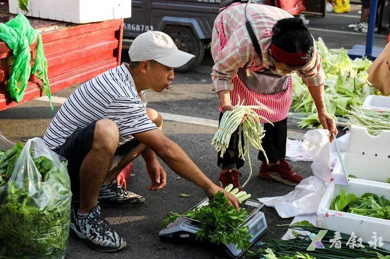 市民杨荣莉提着竹篮穿梭其间,她的篮子里已经堆着满满的土鸡蛋、嫩南瓜,“这儿的菜不仅种类丰富,也特别新鲜,番茄一炒就出沙,昨天买的土猪肉炖了汤,味道很好。价格也相当实惠,我和邻居几乎每天都来逛逛。”