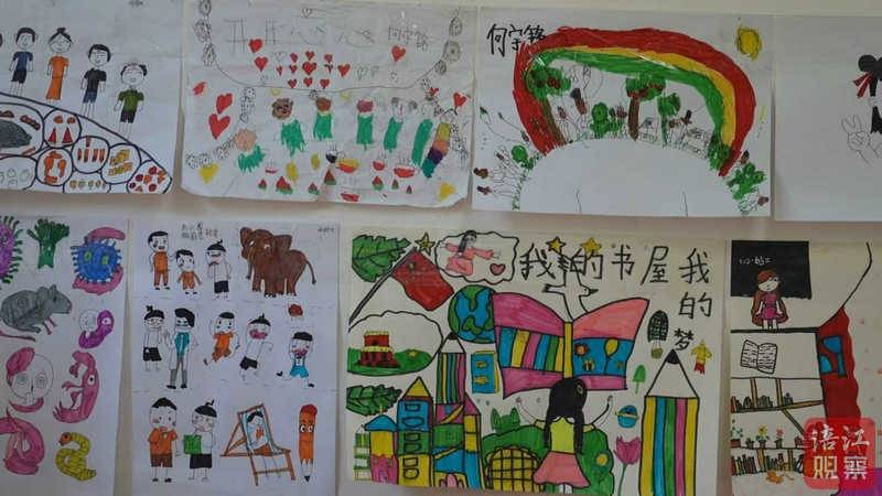 “注意观察狗尾巴花和稗子草有什么不同哦!”在书屋另一角,李梓骥将随手采来的野花野草插在瓶里当教具,教几个大孩子素描。陈佳琪用马克笔将狗尾草画成卡通造型,在画纸角边落笔写上“我在农家书屋的快乐时光”。书桌对面墙上,贴满了孩子们稚嫩的涂鸦,记录着他们在这里的点滴与美好。