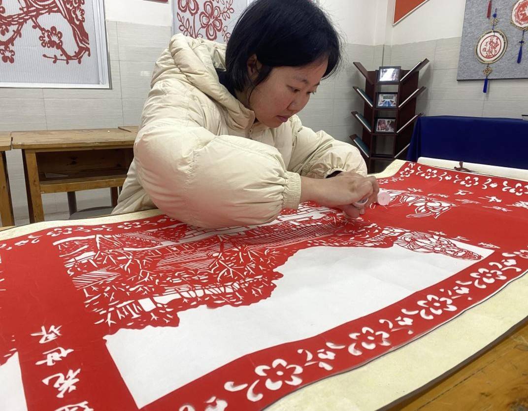 但廖长文明白,仅照着老样子剪,无法让这门手艺“活”下去。跟随第三代传承人武礼春学习,廖长文领悟到剪纸的魂在于“静气”。“一幅复杂的花样需拆解三百刀,每一刀都得心静。”在追求效率的激光雕刻时代,廖长文执着地守护着手工的价值,“剪刀磨的是耐心、定力,是对纸的敬畏,这一功夫是抵御浮躁的根本。”