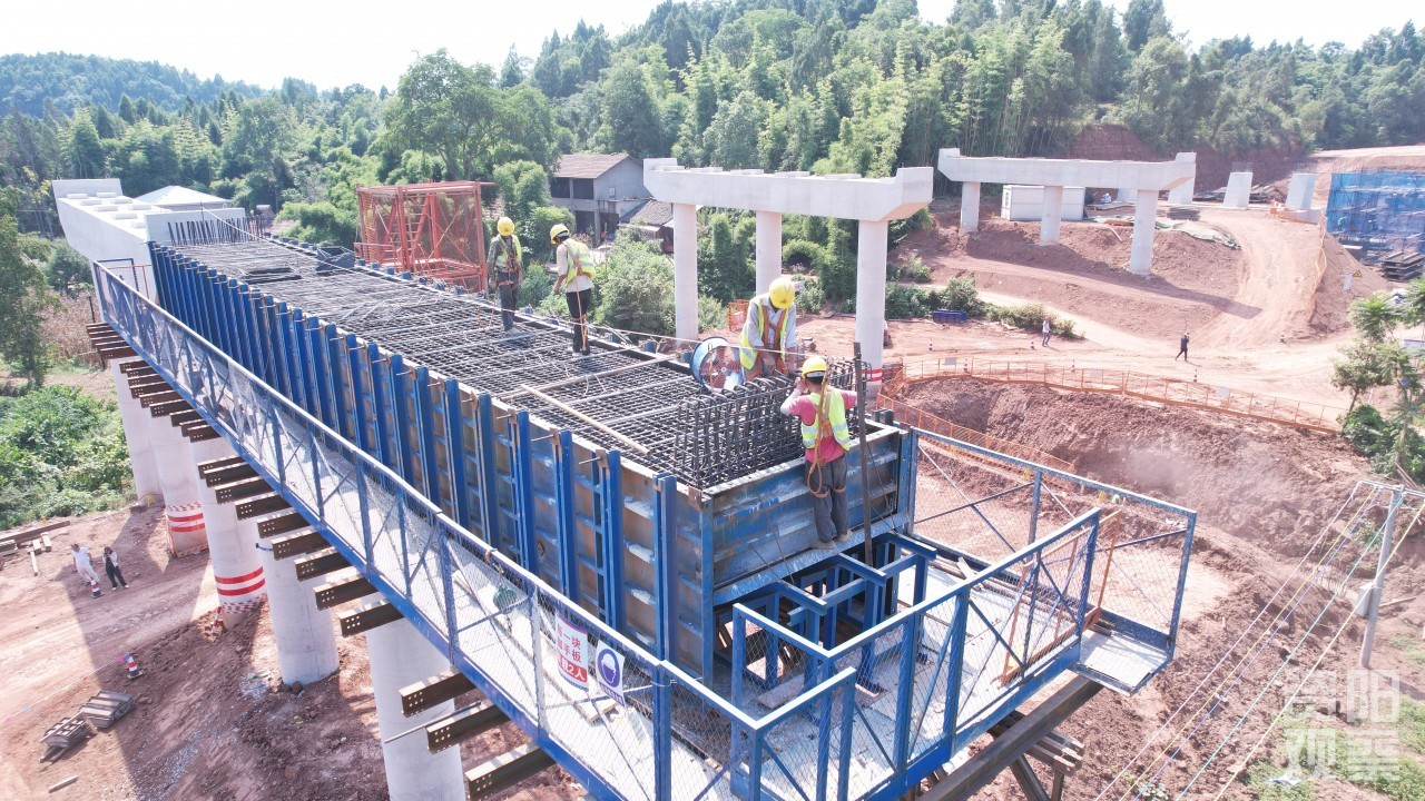 “目前正推进桥梁下部构造,即将开始上部预制梁生产和匝道现浇梁施工。”四川成内渝高速公路有限责任公司资阳代表处管段工程师张彬说道。