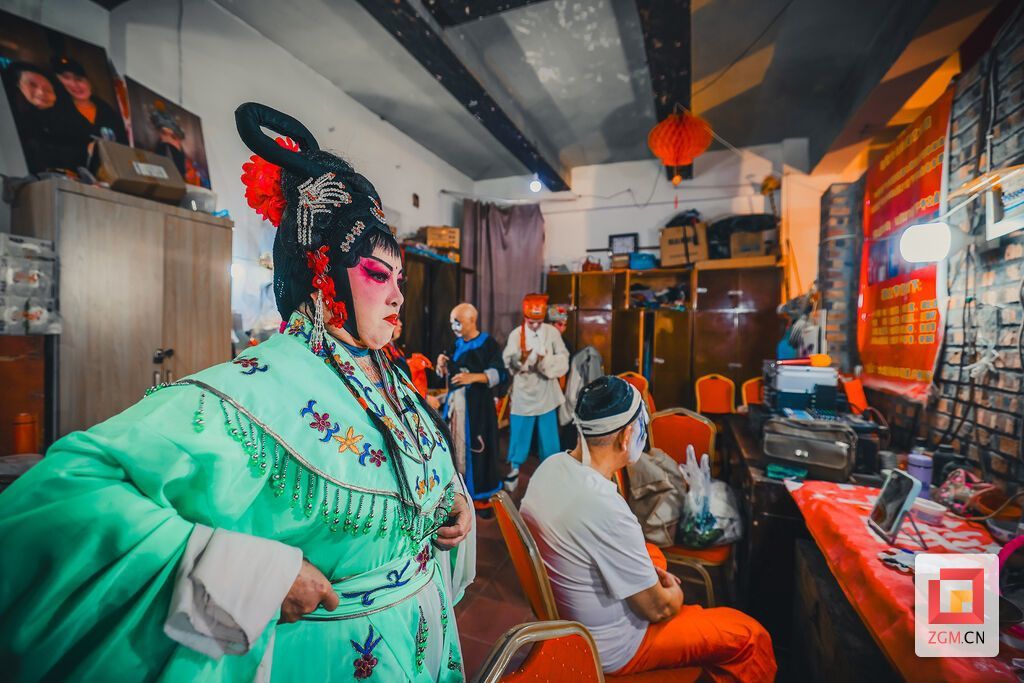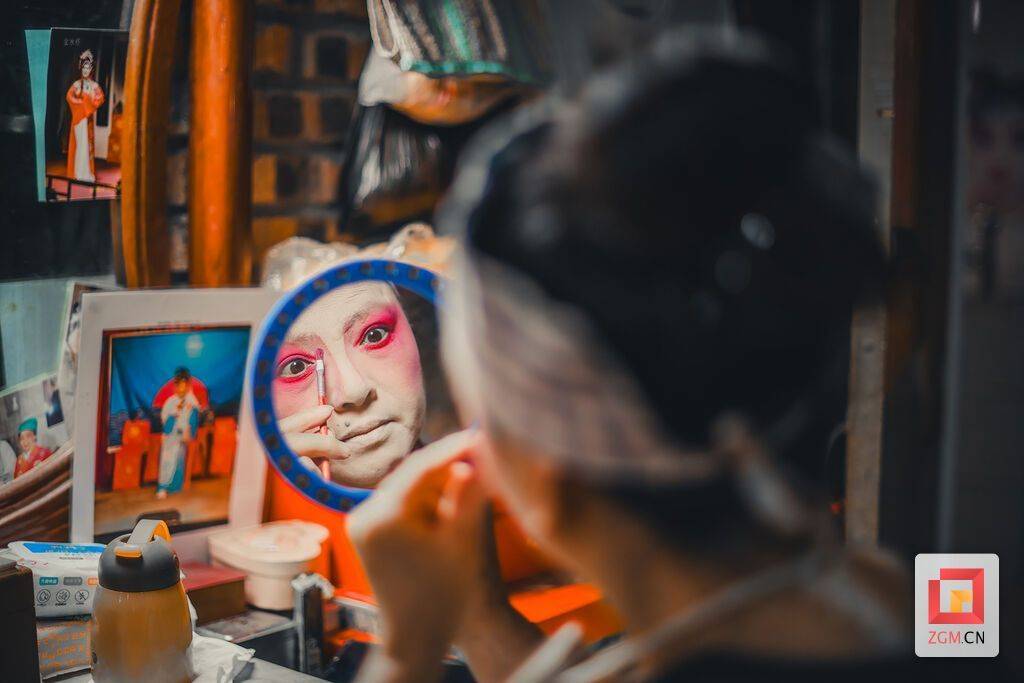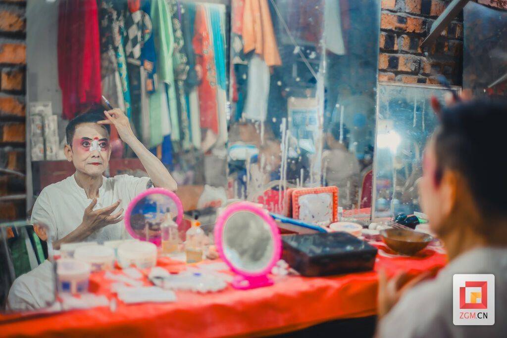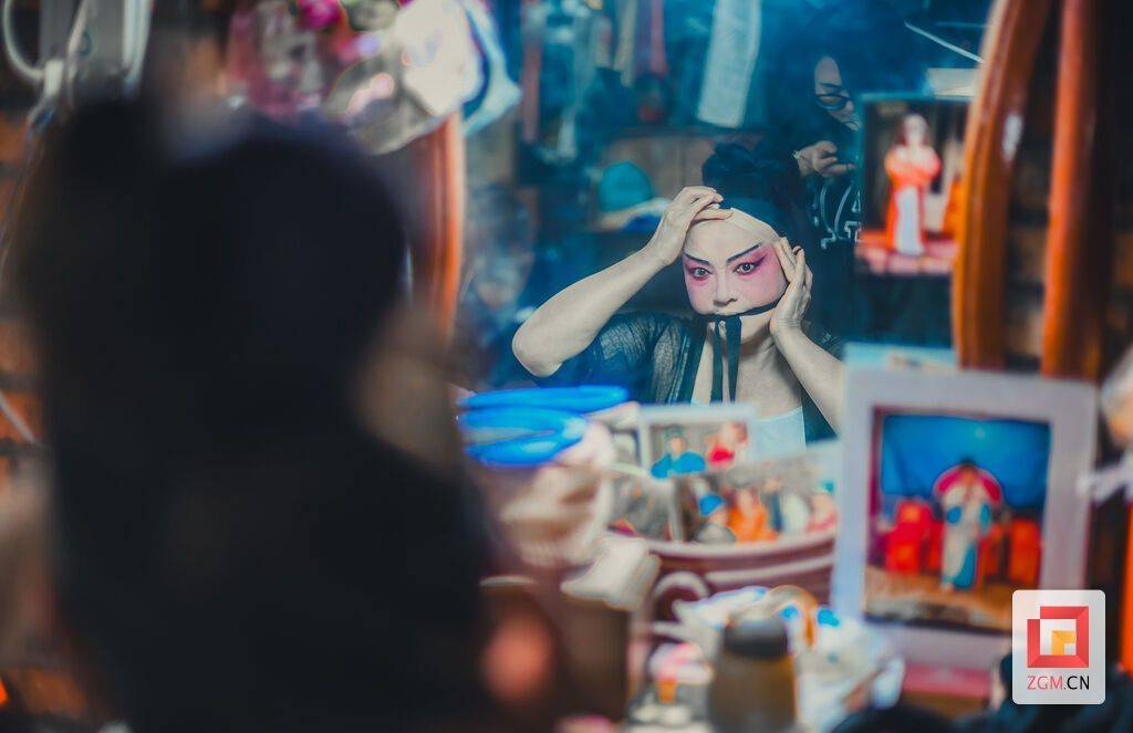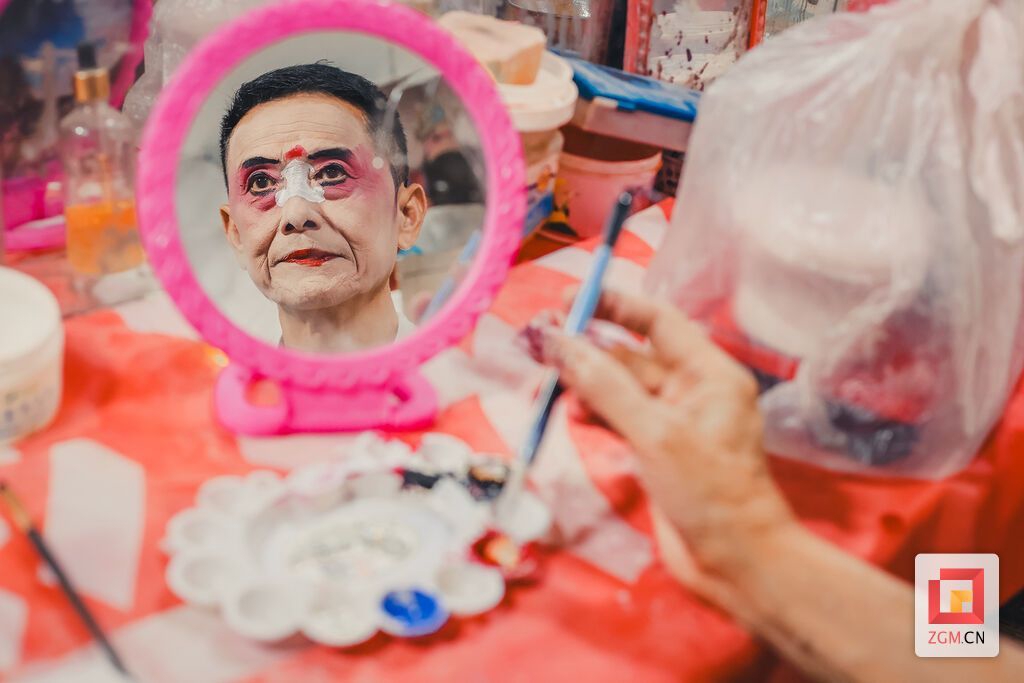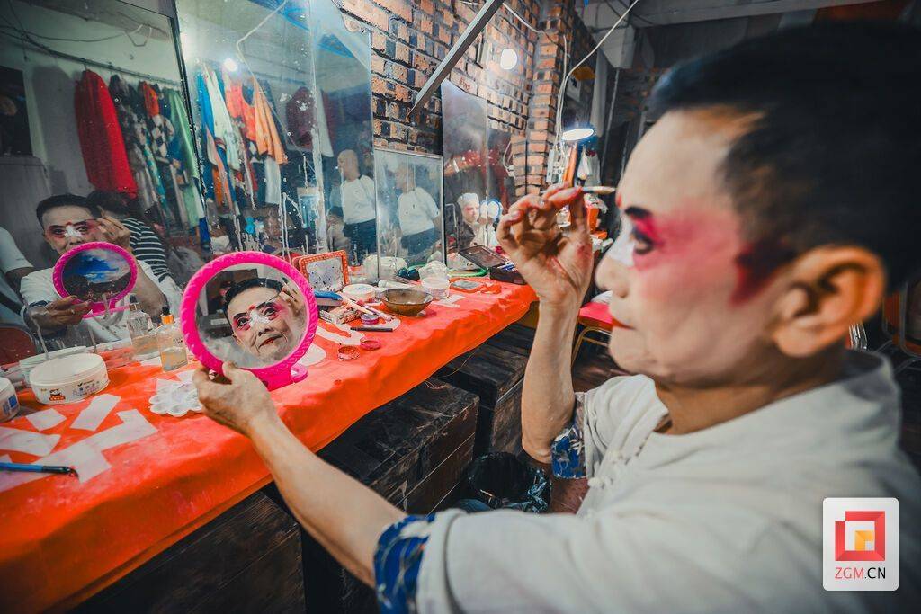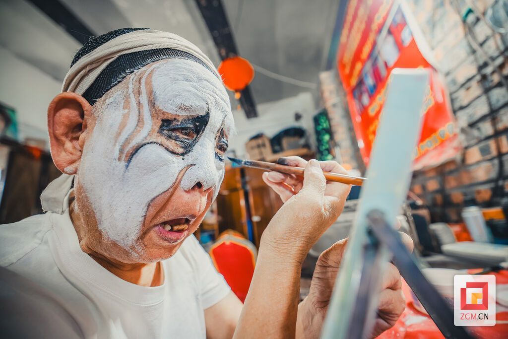 这不仅是化妆,更是一场开演前的神圣仪式,演员正将自己从平凡的肉身“渡”成舞台上的英雄或鬼神。 记者 宋姿熠 摄