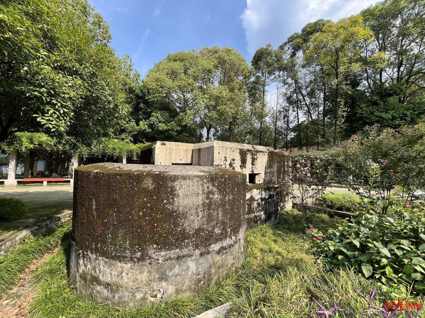 如今,地堡上遍积青苔,但看得出格外坚固。刘孝昌透露,地堡用钢筋水泥浇筑,“当时国内钢产量只有10万吨左右,钢筋水泥都是从美国走驼峰航线空运过来的。”