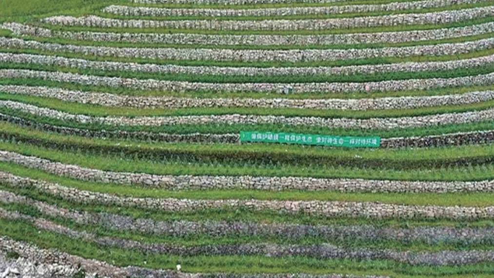 矿山废渣堆上绽放出层层绿意,曾经的“工业伤疤”如今已成为大熊猫国家公园的生态廊道。在雅安市石棉县板厂沟,梯田依山蜿蜒,青草与灌木在阳光下焕发生机。这片绿意之下,掩埋的是昔日矿业开采遗留的废渣。