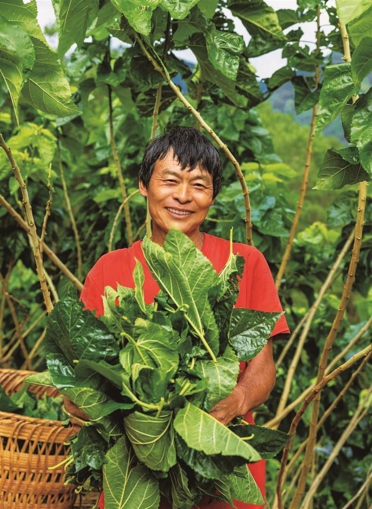 手抱桑叶,新林村村民李平畅满是喜悦。