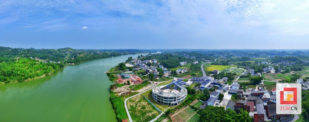 如今的花园村美不胜收,已成为沱江沿岸上的“真花园”。图为无人机拍摄的全景图片。