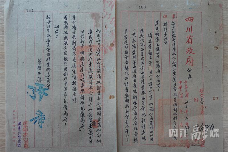 四川省政府关于转发四川公路局关于在内江重庆两处拨售酒精以利行军的函(内江市档案馆供图)