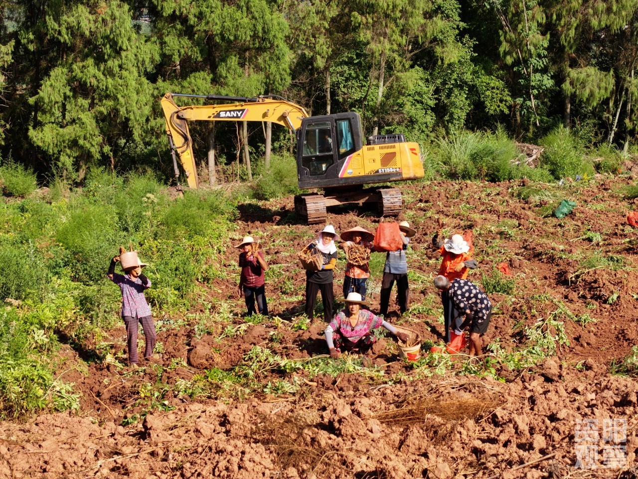 轰鸣的挖机铁臂起落间,一丛丛带着泥土芬芳的白芷被连根掘出,独特的药香在丘陵间弥漫;村民们弯腰捡拾、分拣、装袋,汗水里裹着丰收的喜悦,也藏着川渝边界“药”经济破界生长的新希望。