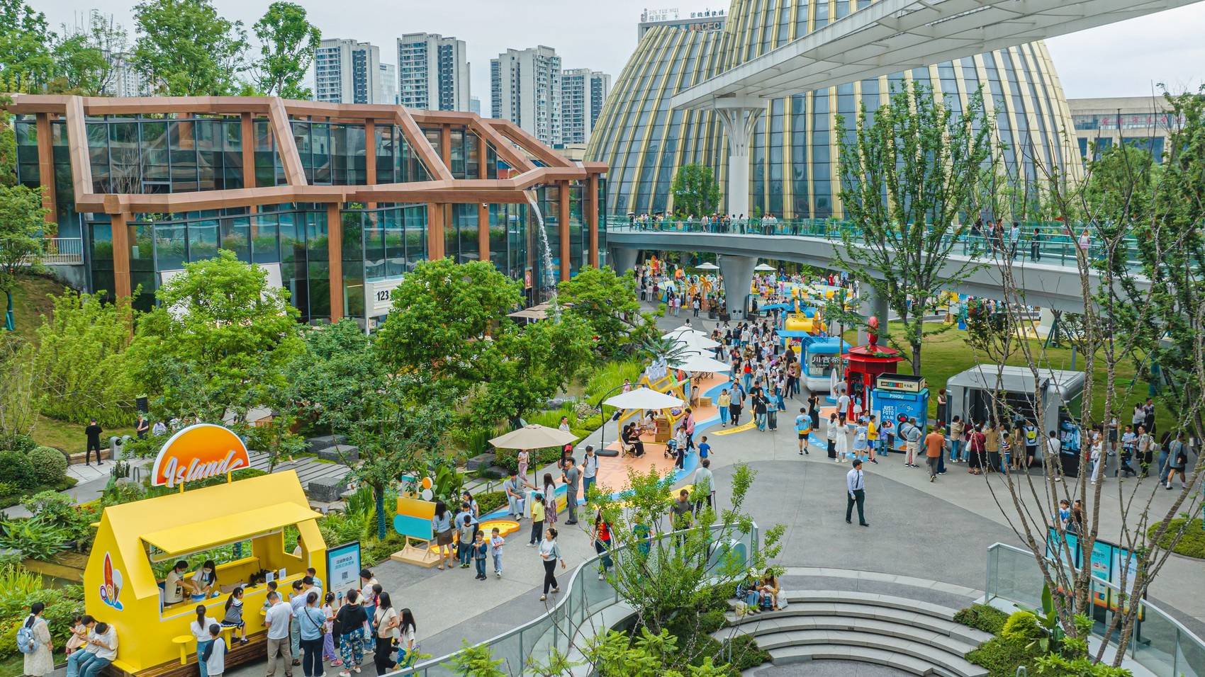 据了解,E·PARK公园所在的万象宜宾天地综合体项目已引入城市首店百余家,涵盖国际时尚、人气餐饮、生活方式、儿童娱乐等多元业态,将于9月底全面开业。依托交通区位优势、近享地缘客群、承接全城消费,这里计划通过三到五年运营实现社会消费品零售规模达18亿元以上,打造成为当地辐射周边三省八市的区域消费中心。