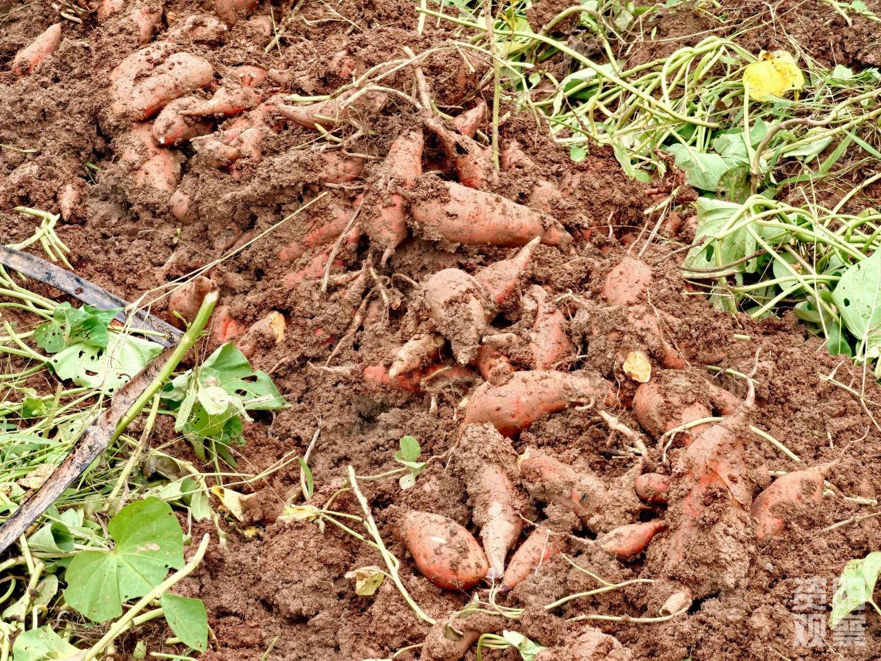 当天上午10点,周礼镇海棠村,村党支部书记、主任呙林荣弯着腰,和村民们一起挥锄挖薯。新翻的泥土气息扑面而来,一颗颗饱满的红薯铺满田垄。