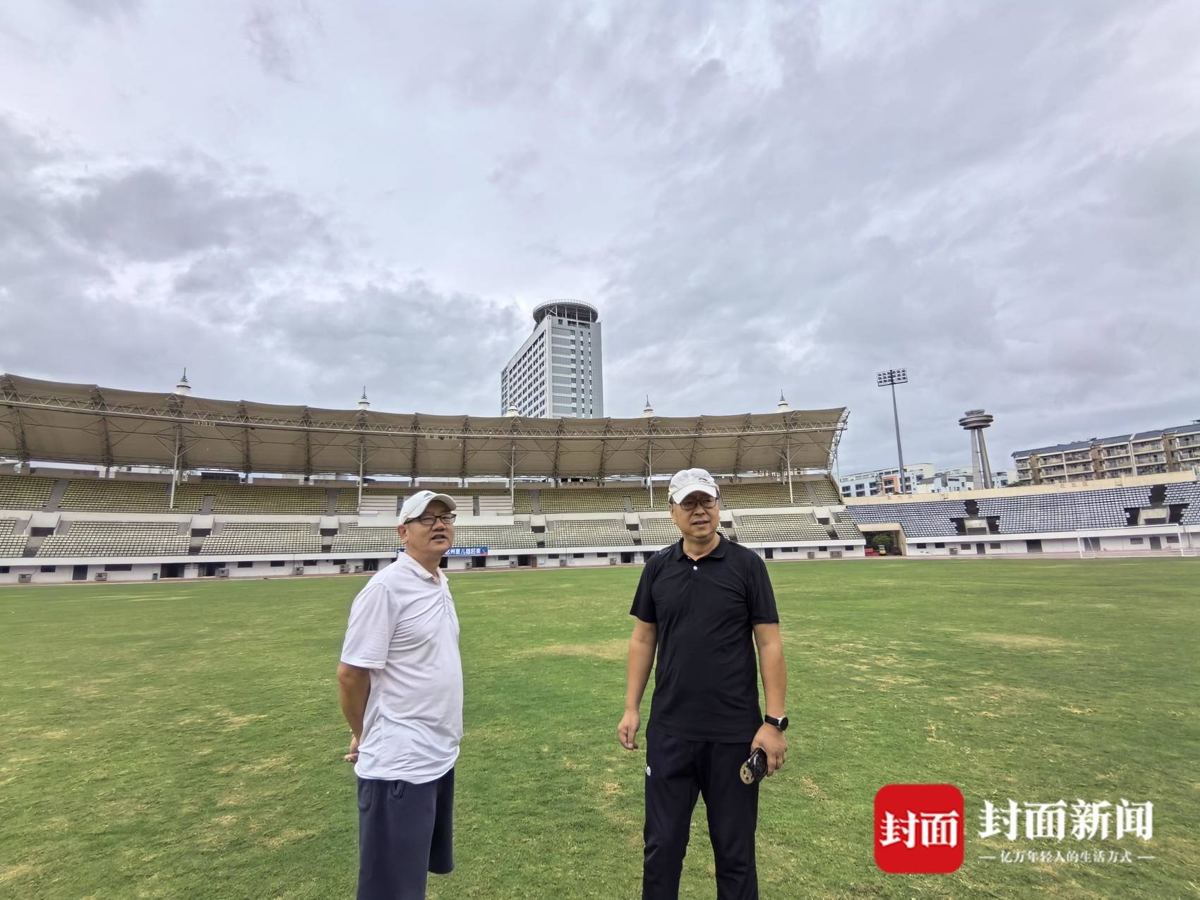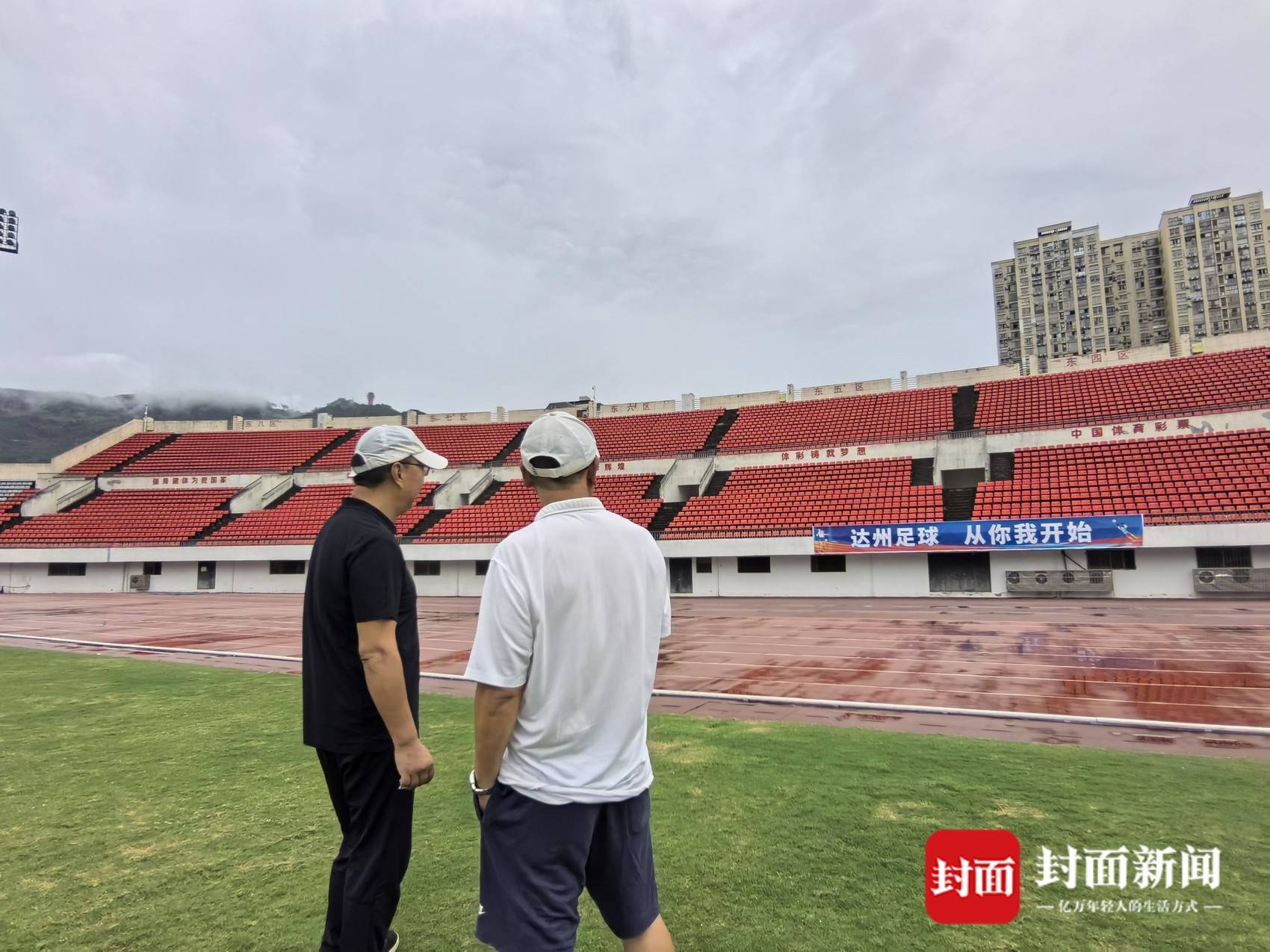 达州足协主席岳毅和主教练冯涛在球场上等着队员们