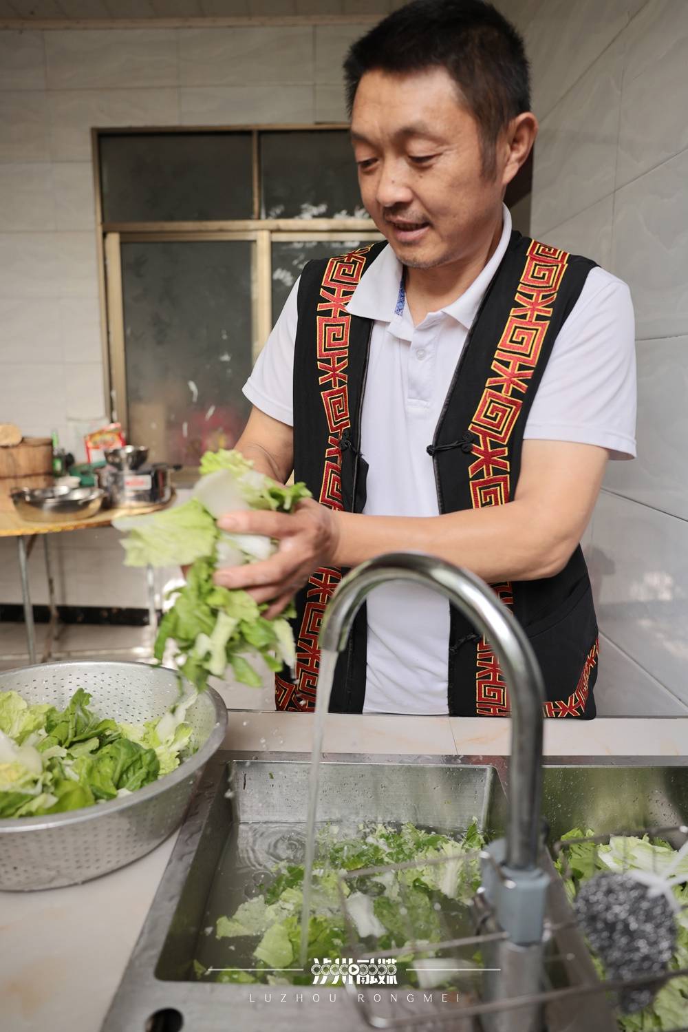 堰塘村村民罗思伟淘洗青菜。孔芒 摄