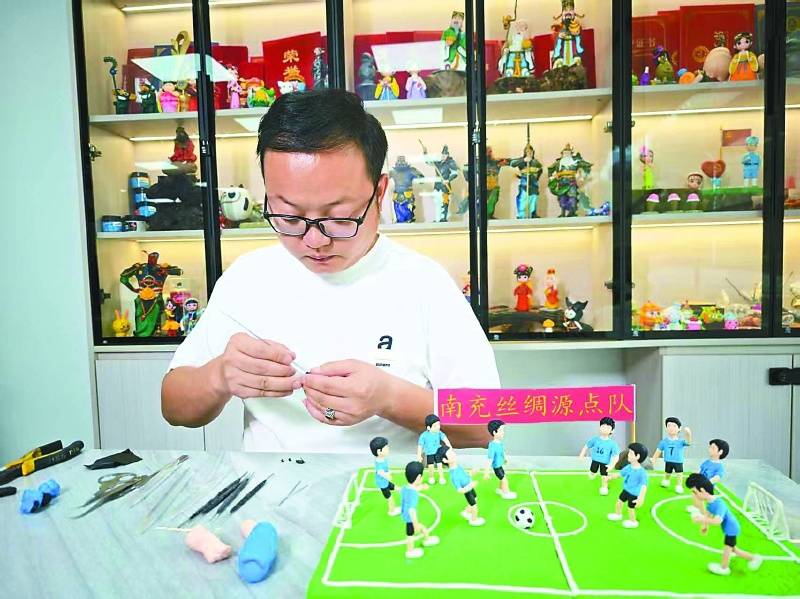 连日来,随着2025/2026四川银行四川省城市足球联赛(简称“川超”)热度持续攀升,代表南充出征的南充丝绸源点队收获了越来越多市民的关注。在西充县多扶镇,非遗泥塑代表性传承人王安斌就用自己的方式表达了对南充队的支持:他创作出一组足球题材的泥塑作品,以非遗的力量激励南充丝绸源点队获胜。9月17日,记者对他进行了采访。