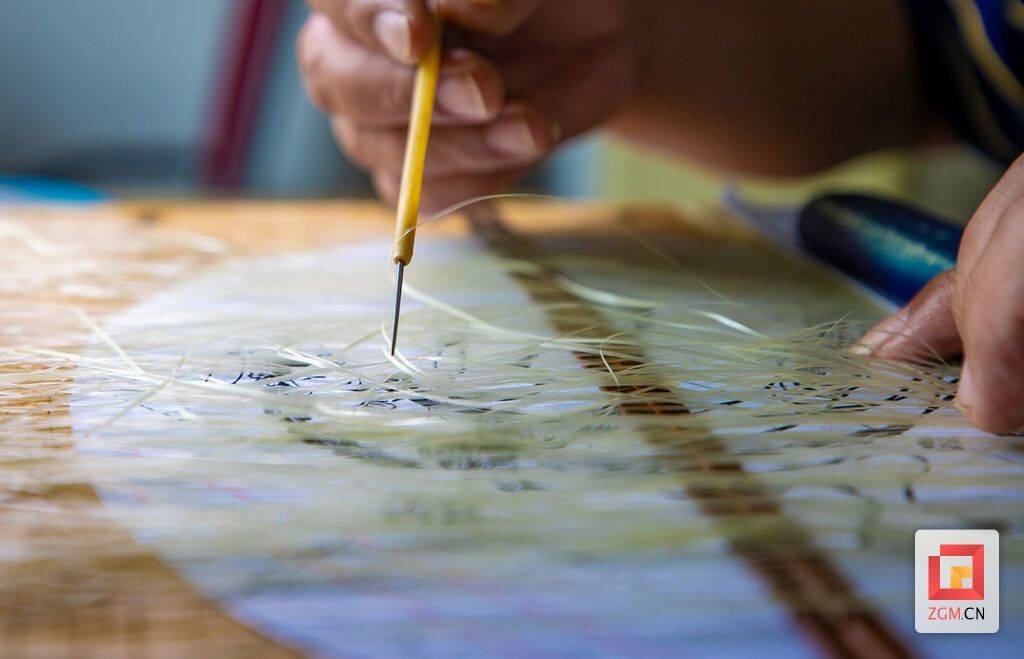 这一技艺的飞跃,源自龚道勇三十多年如一日的执着追求。他将竹丝厚度从父辈的0.025毫米降至0.01-0.015毫米,宽度也缩减了30%。正是这一突破,让龚扇从表现山水花鸟,迈入了刻画人物神韵的全新境界。此刻,他正为《飞天》精心准备这些细如发丝的竹丝,每一根,都凝聚着世代相传的智慧。