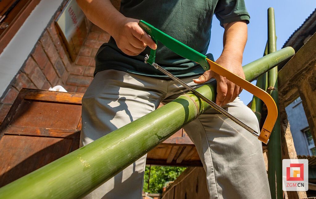 分解竹子 记者 叶卫东 摄