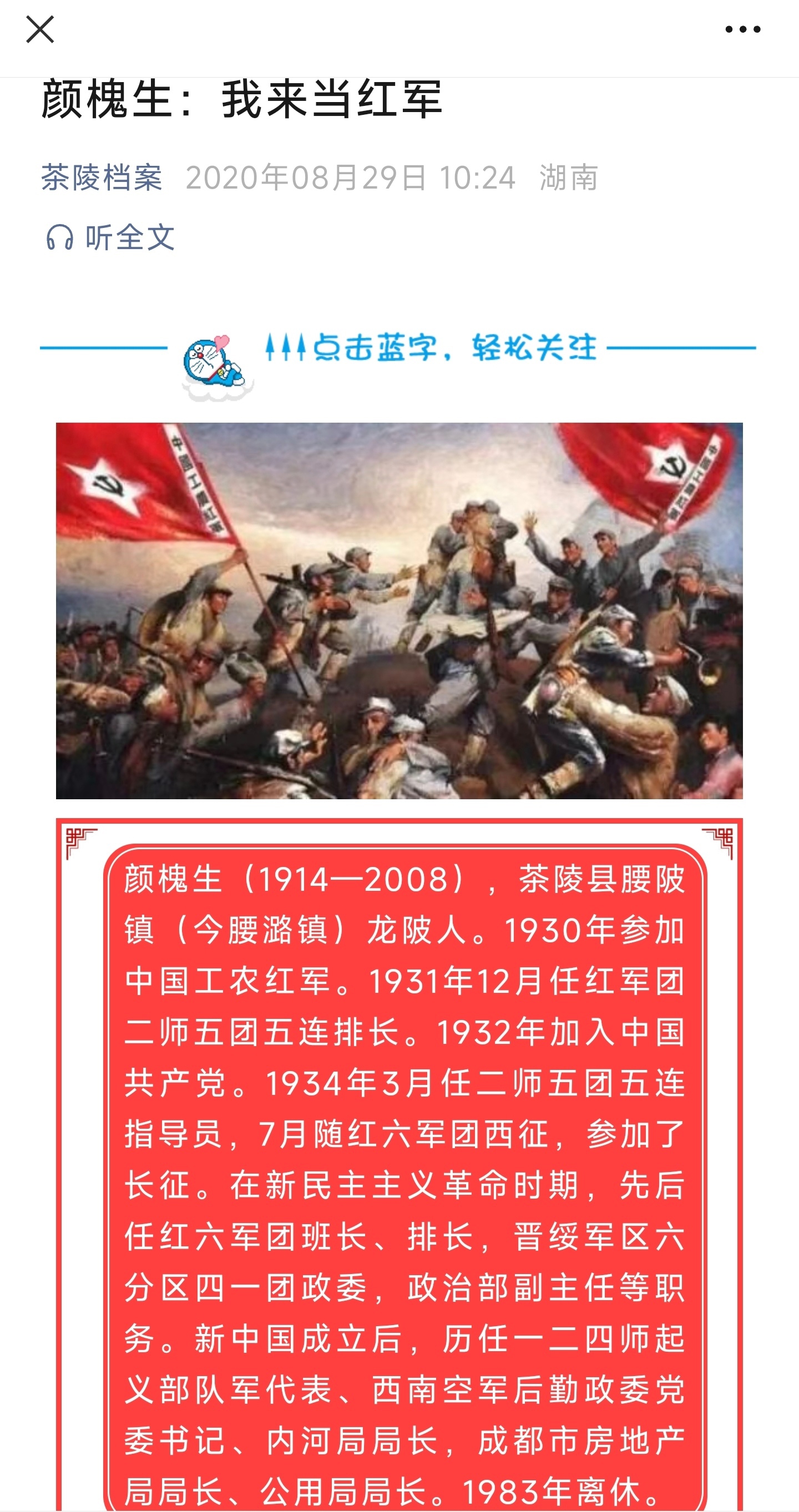 颜槐生老前辈的家人,不知道您是否知晓父辈那段峥嵘岁月?是否留存着他的勋章、书信、老照片?是否愿意让这些珍贵的记忆,与其他红六军团老战士的故事一同,被历史永远珍藏?