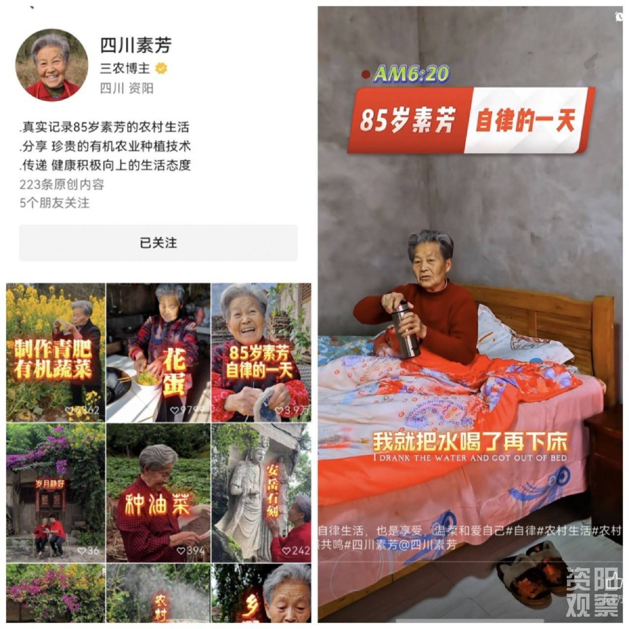 “四川素芳”,真实姓名为彭强刚,资阳市乐至县通旅镇花书房村人。从成都的设计师,到85岁母亲向素芳的全职陪伴者,他放下绘图笔,拿起手机,用持续更新的268条视频,为“如何在当下尽孝”写下了一份生动答卷。