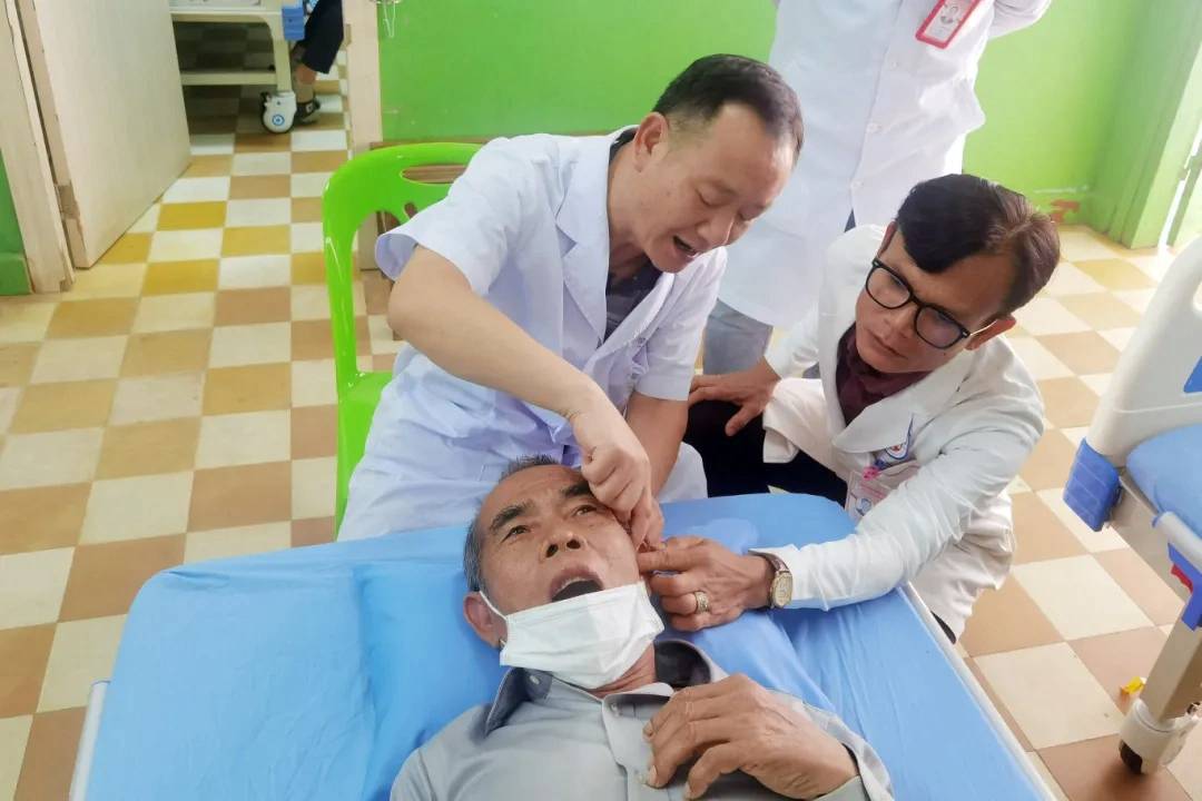 援柬医疗团成员江成鹏为柬埔寨患者进行治疗
