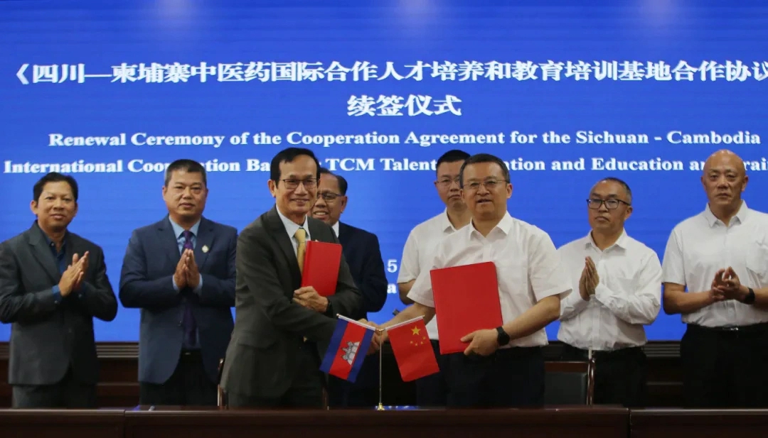 2025年5月14日,柬埔寨暹粒省卫生厅代表团赴雅,续签暹粒省医院与雅职院附属医院友好医院合作协议,就中医药人才规模化培训、中医适宜技术推广等合作达成更多意向。