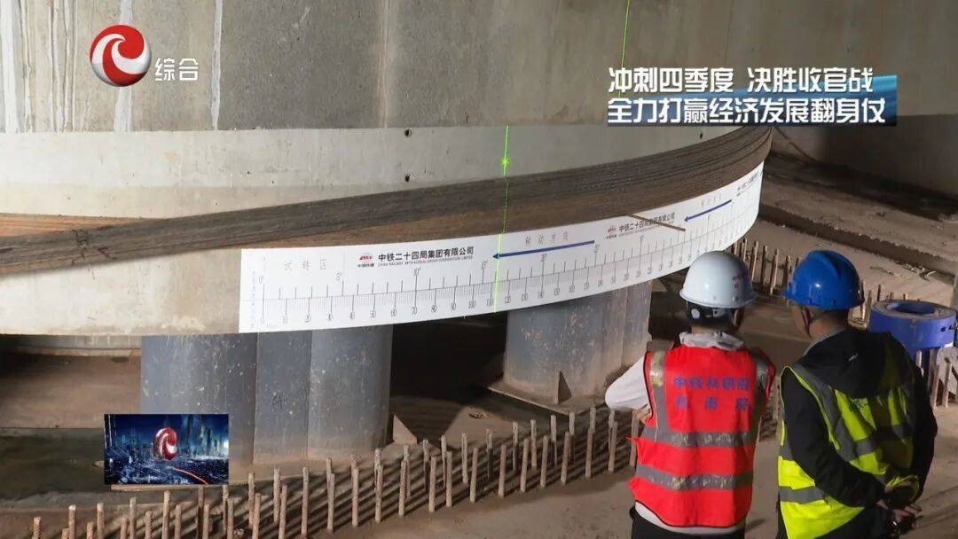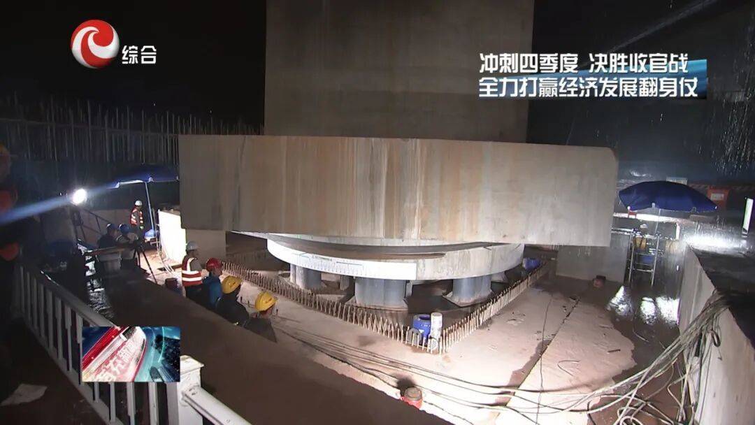 中铁二十四局集团有限公司南潼高速公路SG项目部经理 杨文虎:为攻克这一技术难题,我们创新采用先进的转体架桥法,耗时数月精心设计转动、牵引、制动三大核心系统,并借助BIM技术开展了几十次模拟推演。转体作业当天,我们安排了20多名技术人员,通过监测设备实时更新数据,全程跟踪桥梁应力变形和位移情况,最终实现了毫米级的转体精度,这背后是我们整个团队数百个日夜的坚守和攻关。