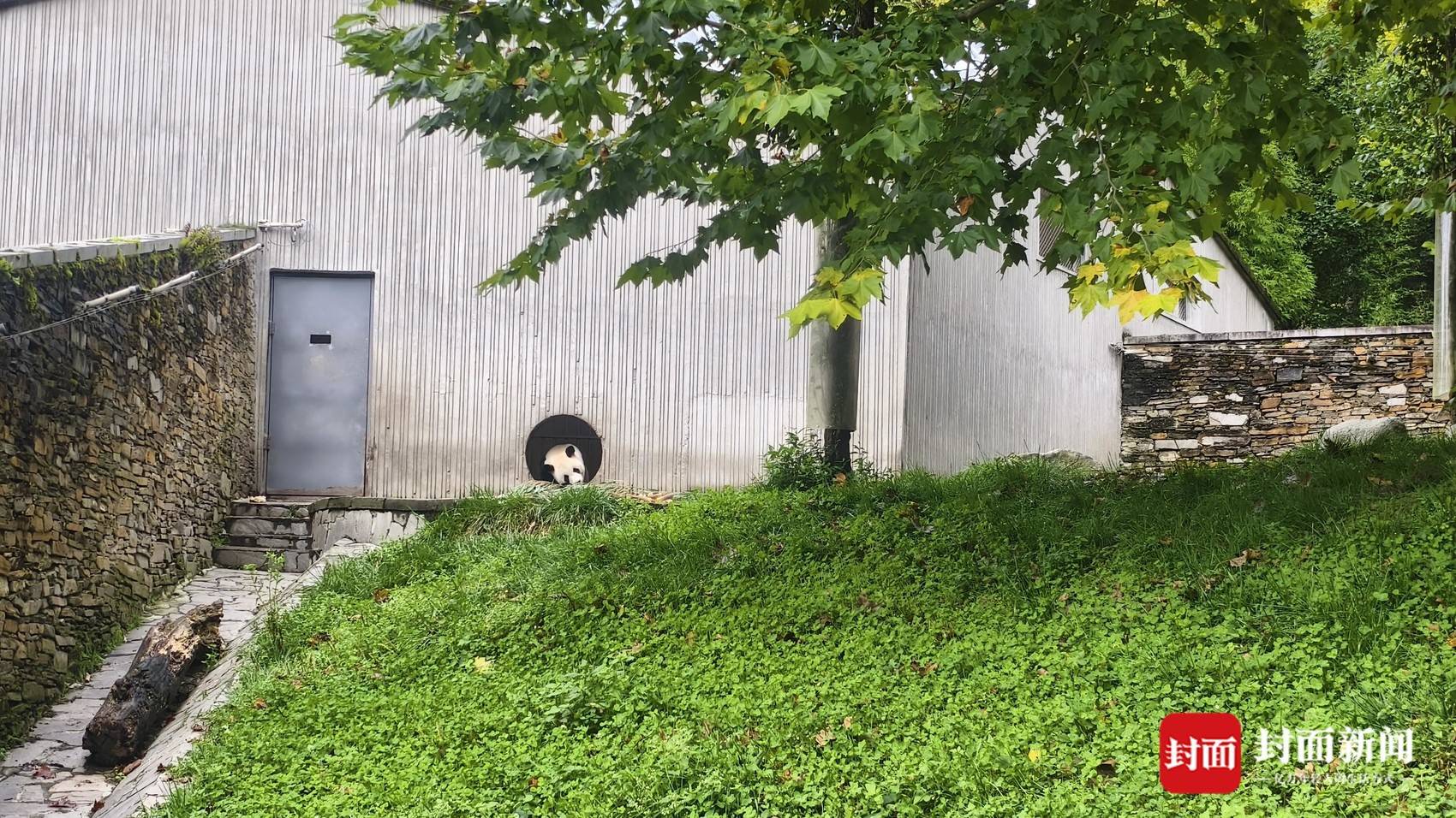大熊猫国家公园眉山片区,大熊猫在搭建的人工巢穴附近活动(图片由受访者提供)