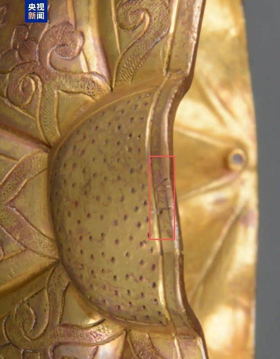最令人惊叹的是宋代工匠的巧思与技艺。整器以纯金通过“锤擛”工艺打造而成——工匠需反复锤击金块,使其延展成薄如蝉翼的金片,再慢慢塑形出瓜果的弧度。瓜棱内侧用细小的凿子凿出鱼子纹,层层叠叠构成卷草纹样,放大镜下每一粒“鱼子”都均匀饱满。瓜脐外鼓处,錾刻的双卷叶花纹旁藏着一个“齐”字铭文,或许是主人的标记,也为器物添了几分人间烟火气。