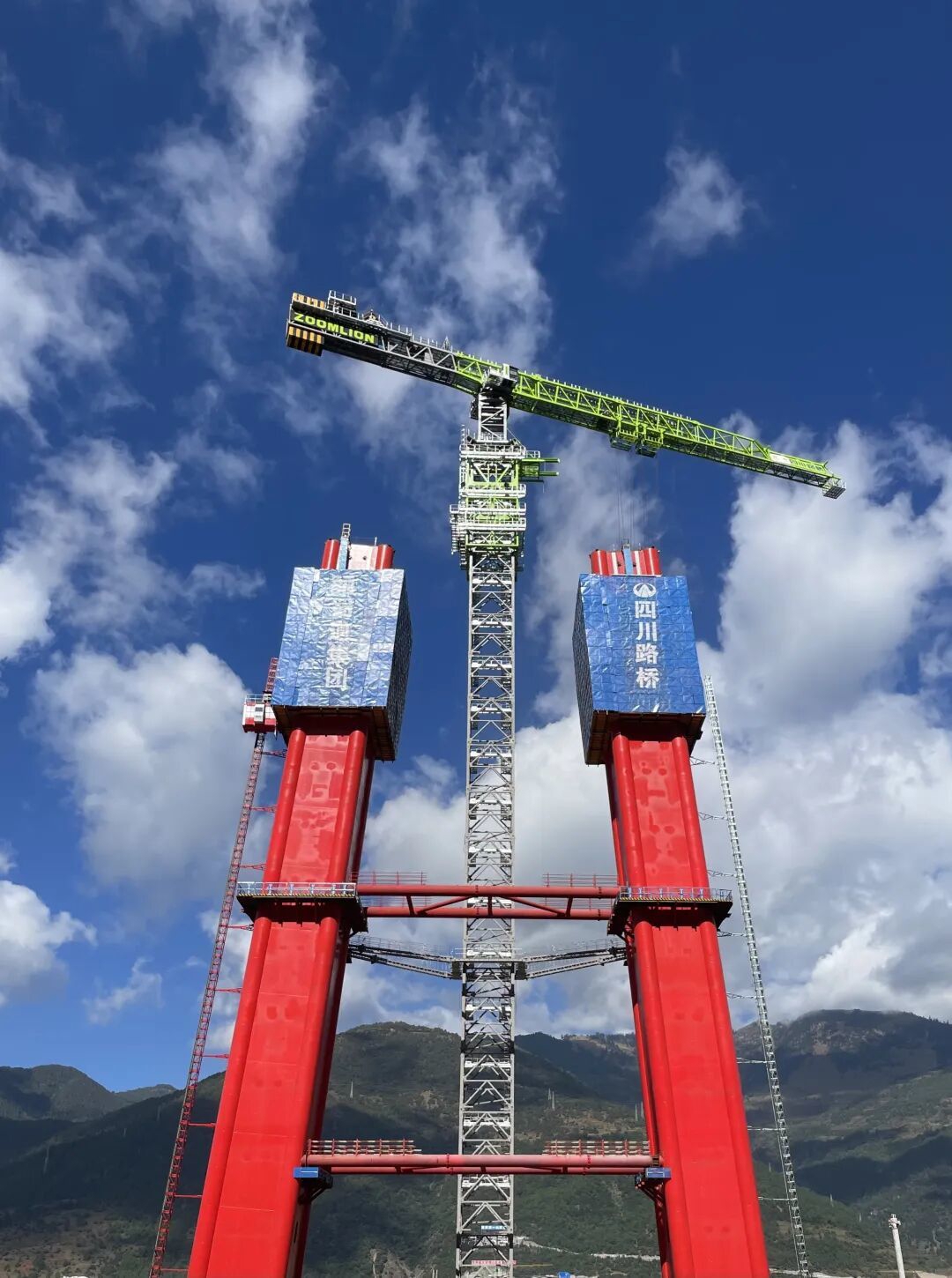 与此同时,西昌岸索塔高度成功突破100米,向228米的塔顶目标稳步推进。该索塔采用全球首创的A形钢管&钢箱-混凝土组合结构,融合钢材抗拉与混凝土抗压优势,有效应对山区强风、大温差与复杂地质。