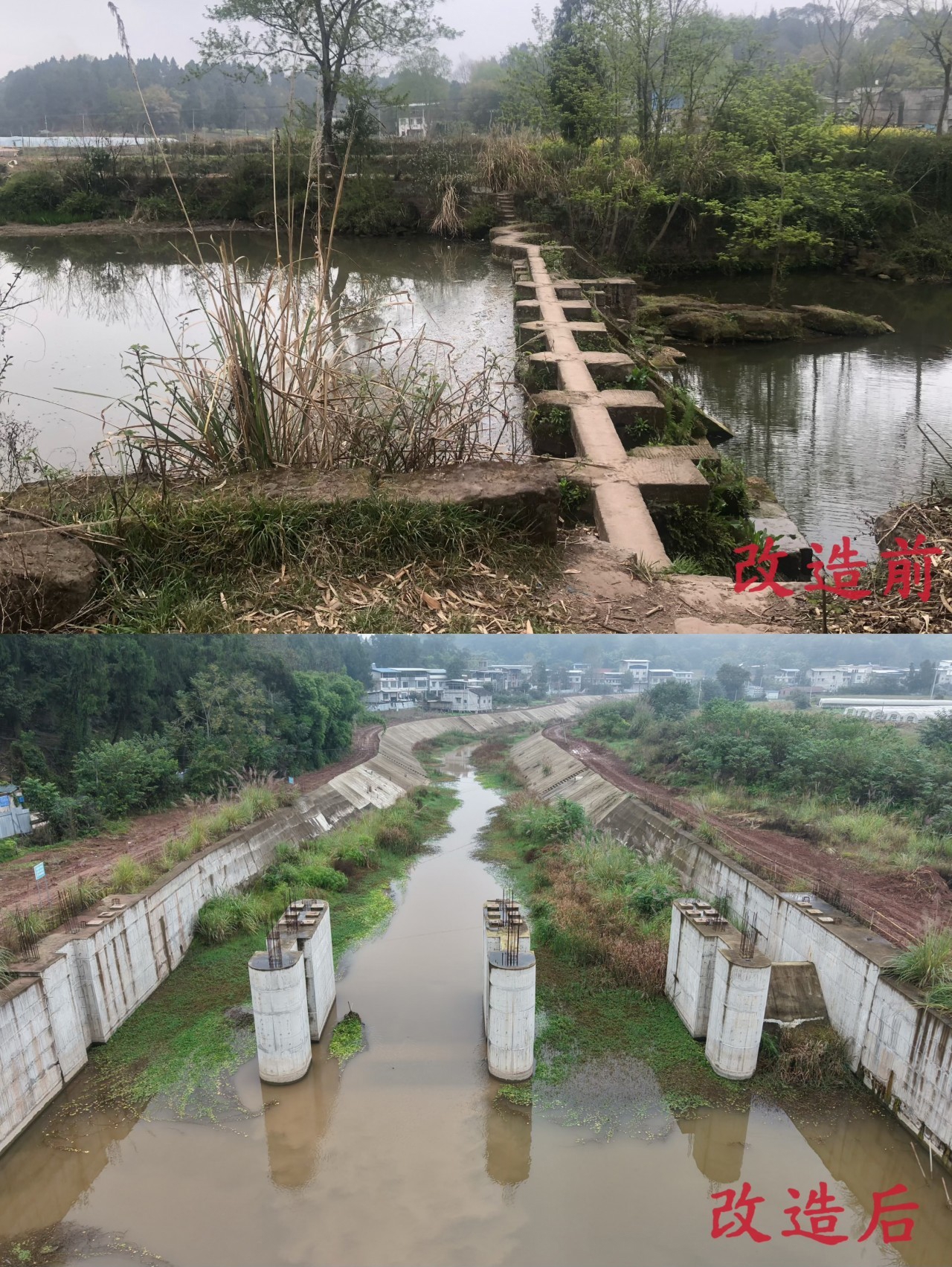 拦河坝前后对比。(改造前由乐至县水务局供图)
