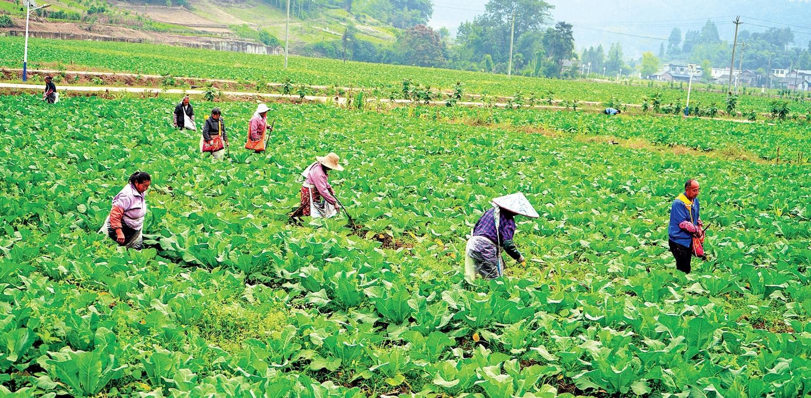 在名山区万亩粮经现代农业园区,800余亩蔬菜基地绿意盎然,40余名工人分散作业,弯腰除草、精准追肥,抓紧秋冬管护关键期,为稳产丰收蓄力。