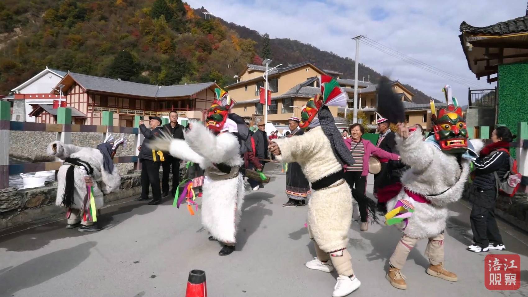 活动当天,祥述加寨一早便洋溢着热闹氛围。身着华丽民族盛装的白马藏族同胞,以最高规格的礼节迎接八方来客。国家级非物质文化遗产“跳曹盖”的雄浑舞步踏响村寨,面具上的古老纹路随动作流转,尽显民族文化的神秘与厚重;白马姑娘们手捧丝带,唱响婉转悠扬的传统山歌,将象征平安顺遂的美好祝福递到每位游客手中。村寨内,手打洋芋糍粑的香气四处弥漫,游客们纷纷驻足摊位前,亲自体验捶打糍粑的乐趣,近距离感受传统美食背后的民俗韵味。