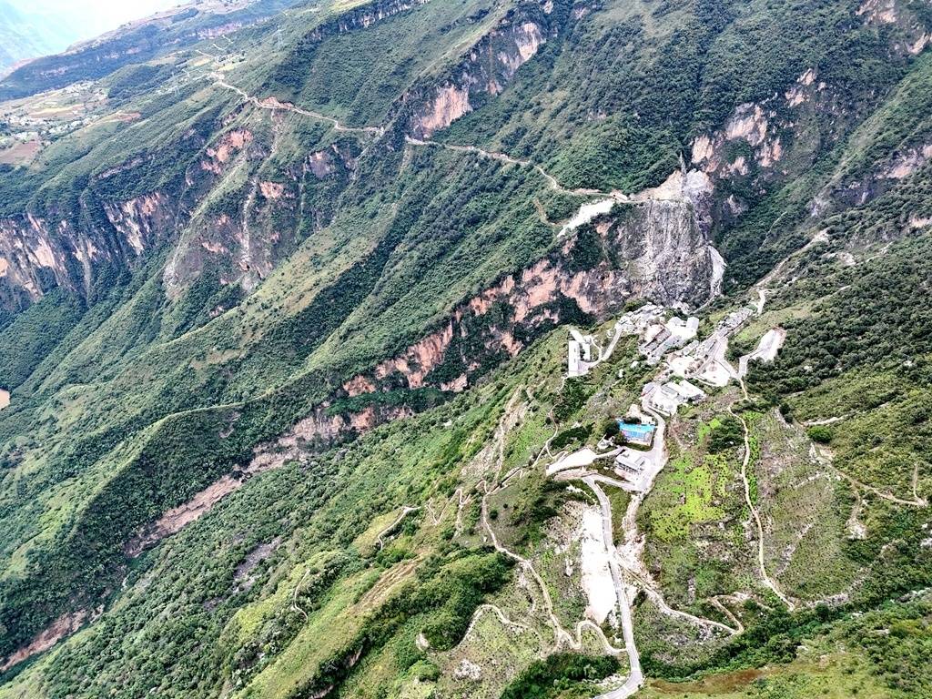 这条通村路的原方案,几乎是在垂直的山壁上凿出一条“挂壁公路”。“难,真的太难了。”乃保土干说:“山体岩石表层风化严重,许多地方一挖就塌,我们的挖掘机都被滚石砸坏了。”