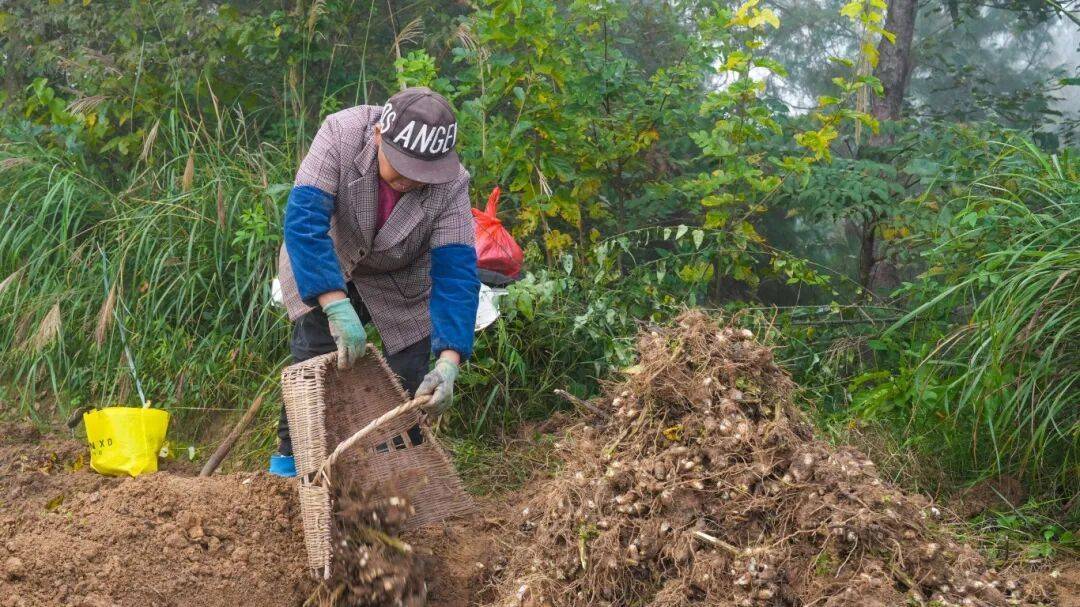 去年社区种金银花,她们务工挣到不错的工钱、尝到甜头,今年社区扩种玄参,从种到收需要人工时,她们不落一天准时来。“社区群里发个用工通知,大伙都抢着来。”孟志琼说。清晨七点就到岗的她,背篓里采挖的玄参已冒了尖。