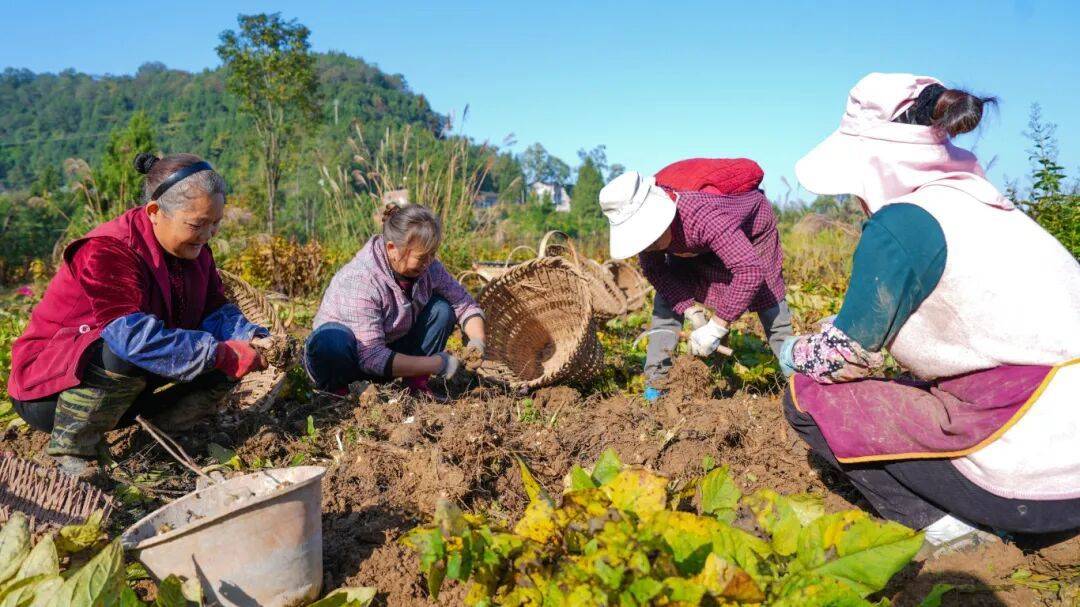 太阳慢慢爬高,晨雾慢慢散开,天更亮了,玄参田里的笑声更响了。社区居民躬身挖参的身影、装得冒尖的背篓、三轮车上码得整整齐齐的玄参,在太阳底下拼成了一幅热闹的丰收图。