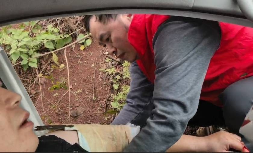 11月14日下午,泸州市古蔺县丹桂镇金华村驻村第一书记、泸州市人民医院副主任护师龚大彬,驱车从金华村返回泸州城区途中,在贵州遵义习水县境内公路偶遇一起车祸——一辆网约车为躲避三轮车失控翻入边沟,车身变形且车内人员受伤。