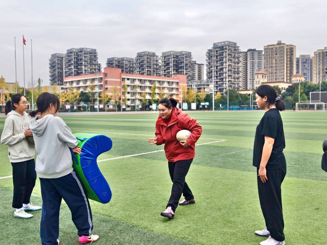 “手臂抬高!注意护球!”晏晓萍的声音在操场上回响。夺得铜牌的老队员已返回各自大学继续学业,如今场上全是稚嫩的新面孔。训练间隙,孩子们常围在一起观看学姐们的比赛回放,那些精彩的扑搂和达阵,成为她们努力追赶的目标。