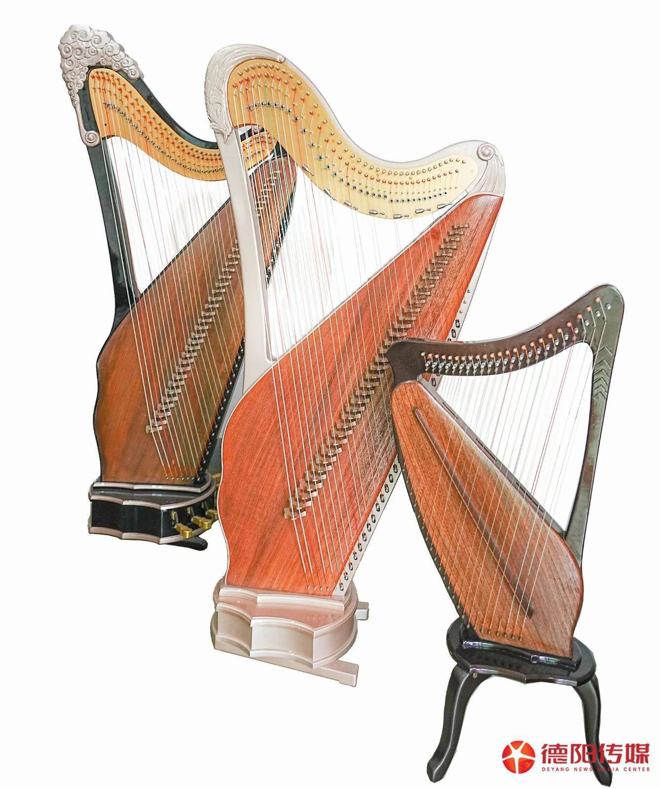 现代23弦、36弦、38弦的箜篌。德阳传媒记者 雷媛 摄