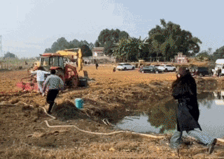 刚演完这场戏,还没走出鱼塘,一位大哥上前:“老板我加下你微信嘛,我们可以合作嘛,你看那片空地来的人可以坐着晒太阳、吃烧烤,我负责提供租借帐篷、桌椅。”