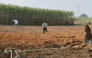 提鱼男从甘蔗地里出来,止不住的仰头大笑,隔着100米都能感受到那股被追逐的兴奋和激动,无法平息。这种儿时追逐的体验让围观的人们笑成一片。