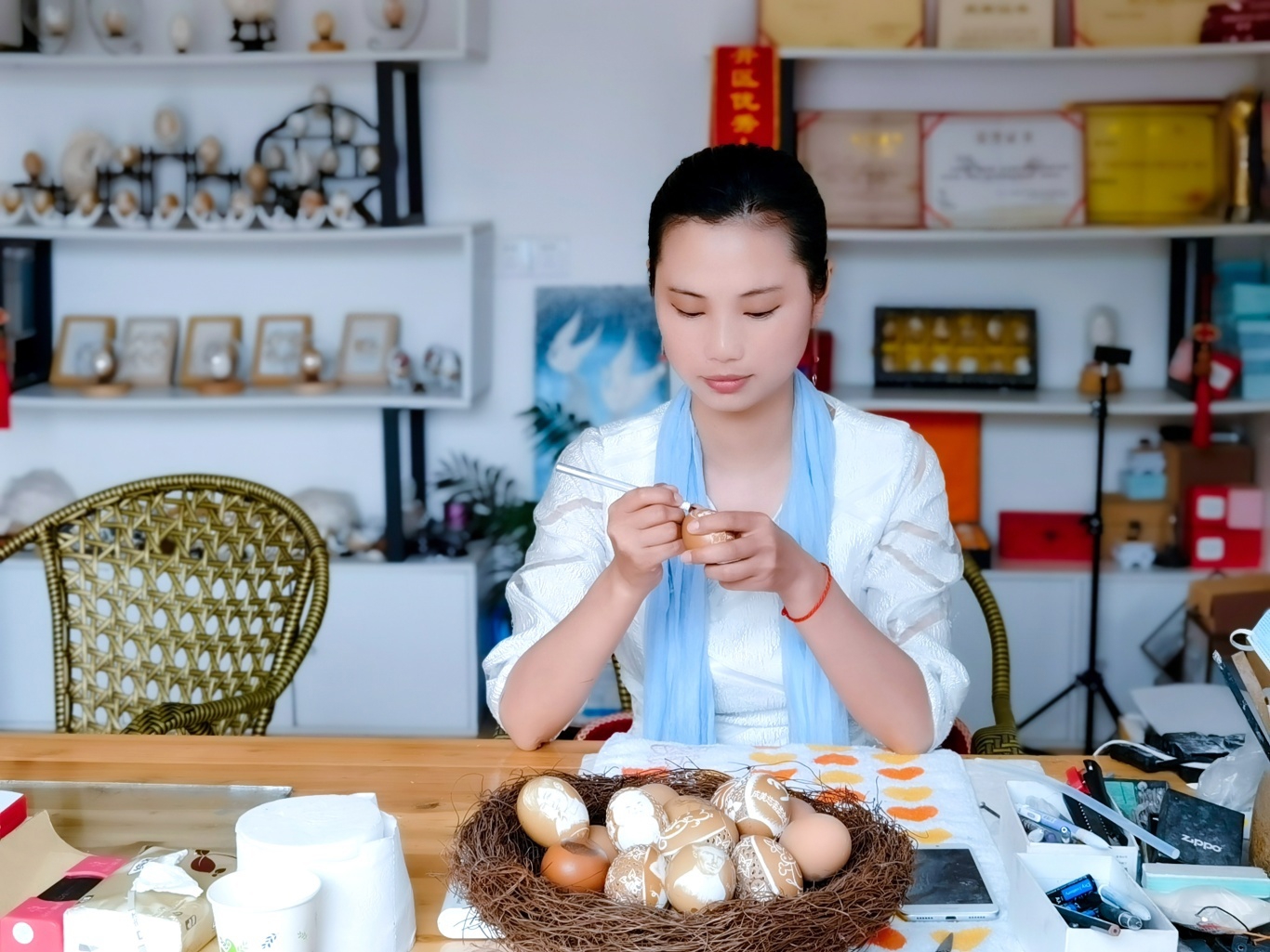 而在舒坪街道,村民陈英的工作台灯光亮着,蛋壳上的人物在她刀笔下渐渐生动——