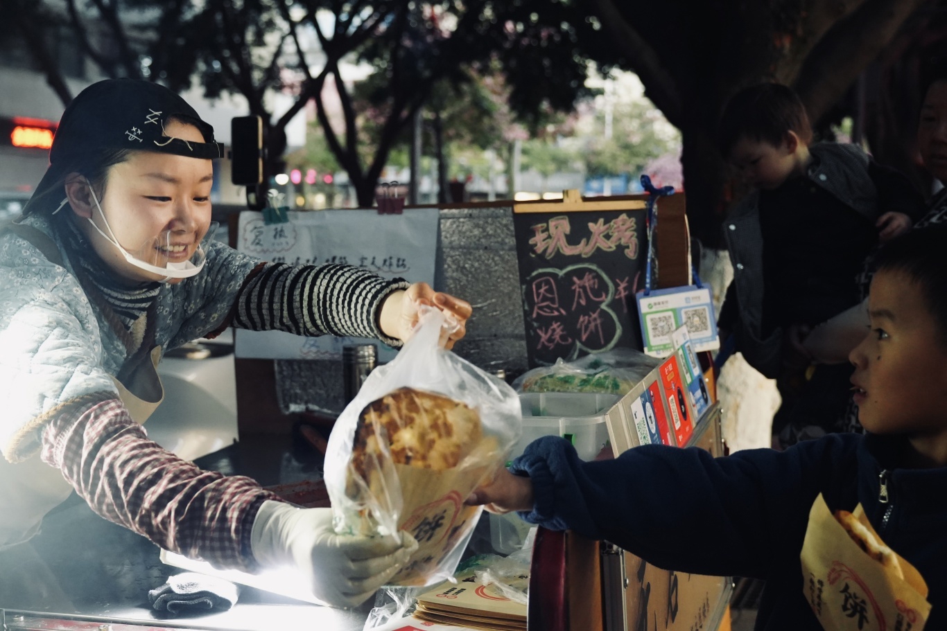 林玉生在南充、长在攀枝花。她在仁和街头支起烤饼摊,用面团与炭火温暖晚归的路人。在她眼中,幸福是烤饼出炉的香气,是食客接过热饼时的笑容,是用烟火气点亮夜色的心安。