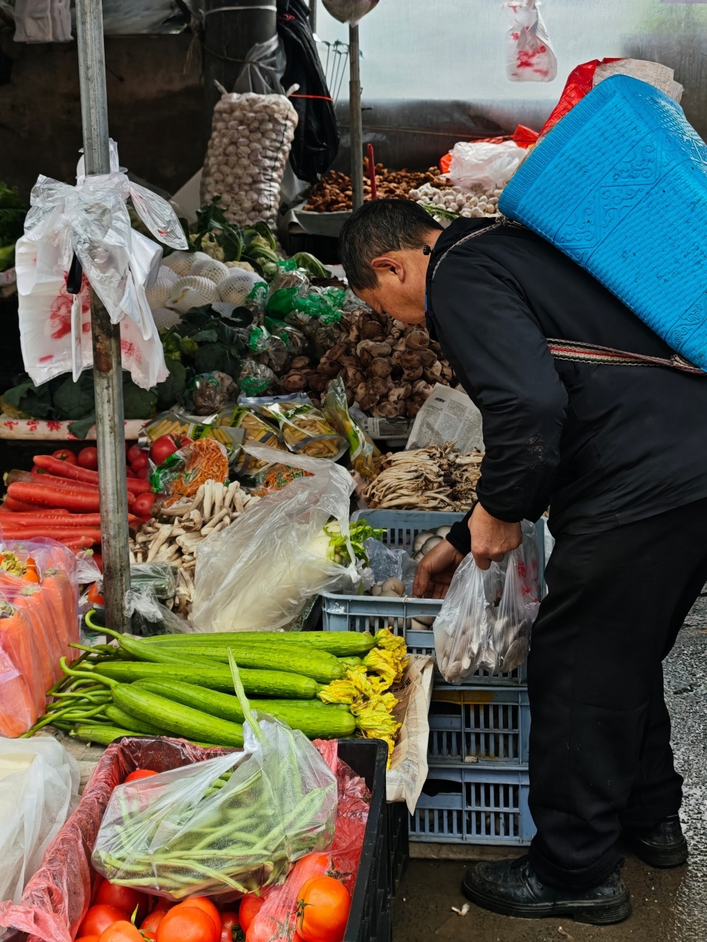 清晨,镇雄县坡头镇初级中学大门前的集市已是人声鼎沸,沿街搭起的菜摊棚子下,人们讨价还价的声音不绝于耳。