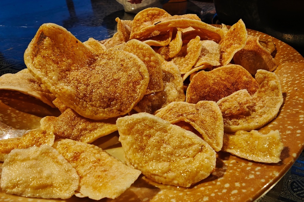 徐燕是自学的烙烤,贵州网络主播教的方法,铁锅是网购的,菜是就近赶场买来的,这些都没啥技术含量,但她做这家店的底气是——自制的烙锅蘸料。她家的蘸料主打糊辣椒,自己干锅炒制或是炭烤,加入三省“灵魂菜”折耳根,少量简单的味精、盐调料,关键里面必须有叙永本地的野山葱。保密比例调制出的焦香麻辣蘸料,在她看来是“万能”,菜豆花、酸菜蹄花汤……即便是蘸别的菜也都很好吃,这也是小店在鸡鸣三省大峡谷闻名的原因。