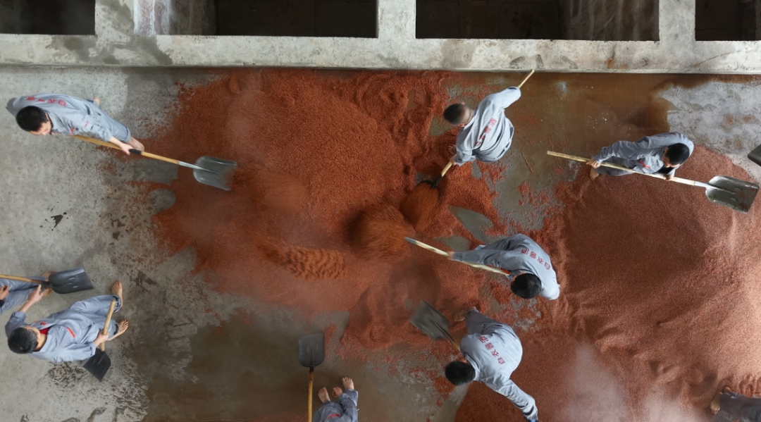 记者看到,车间里,15口老窖池与28口新窖池整齐排列,工人师傅们有条不紊地润粮、上甑、蒸煮,升腾的蒸汽模糊了窗玻璃,却遮不住满厂的生机。