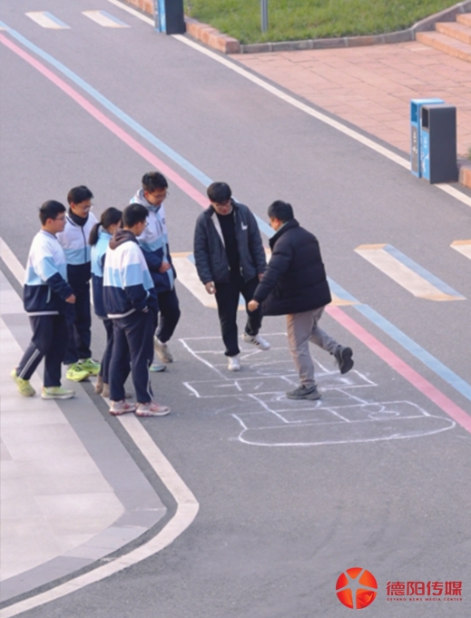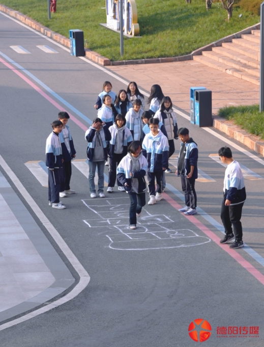 视频中的学校是德阳市鸿鹄高级中学,位于中江县。只见两名同学在校园内用粉笔手绘“跳房子”游戏,起初只是两人的小创意,很快便点燃了校园热情。接下来路过的同学、老师、后勤人员纷纷忍不住玩了起来,大家在跳跃中重拾久违的童真,让人回忆上涌。这场随性又鲜活的“小插曲”,成为了冬日校园里最温暖的风景。