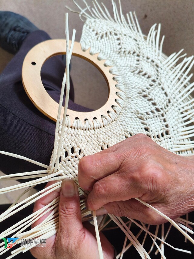 夕阳透过工坊窗户,洒在成排的草编上,光影斑驳如经纬交织。陈德书仍在耐心教学,而郭桃已打开直播,向网友介绍起“捡二压二”的编织技巧和一把草扇背后的匠心……