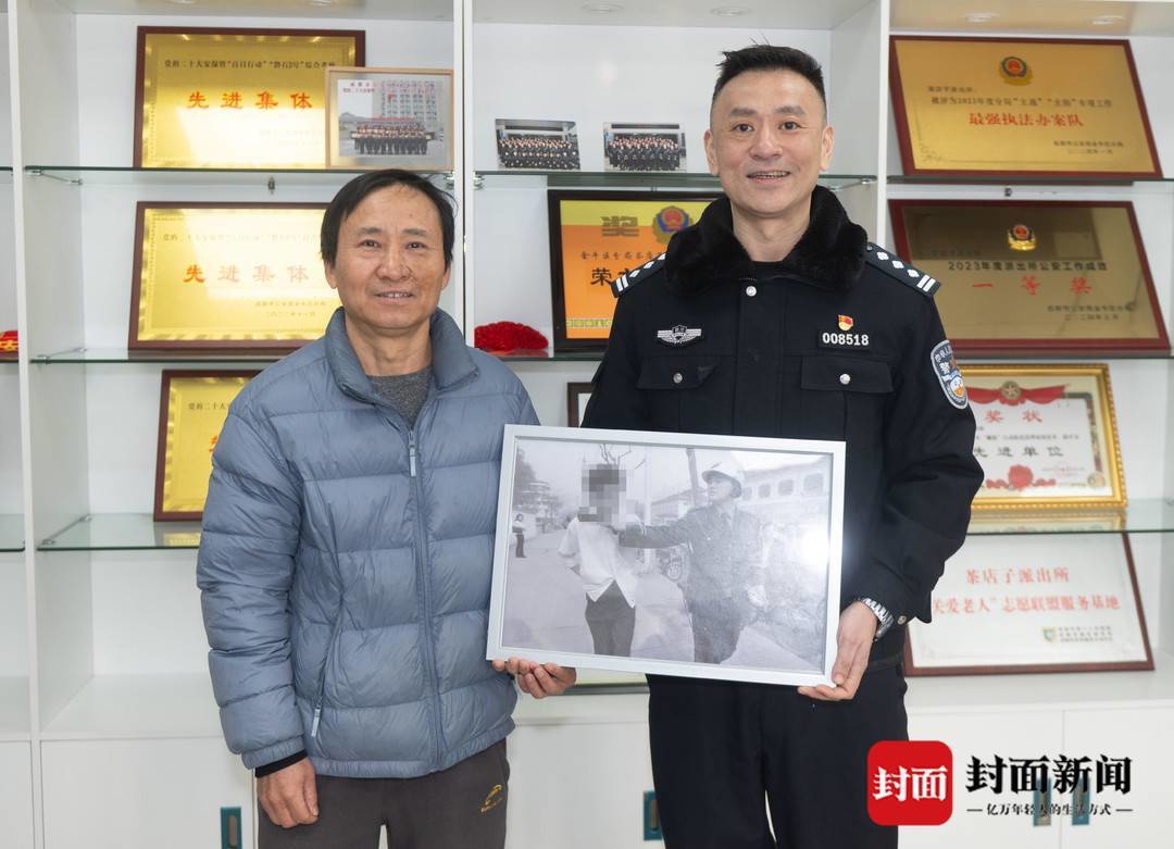 按捺不住心中的激动,刘陈平立即下楼将照片重印装框,于1月12日专程送到了茶店子派出所。