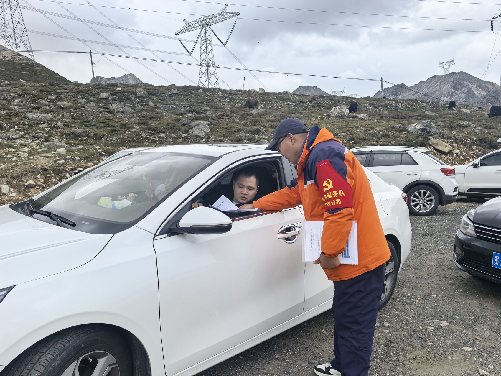 2024年8月份的一天,在距养护站不远处的路上有一辆车熄火了,堵住了过往车辆通行,一时之间,喇叭声四起。车主是一位女士,从云南来,带着父母和小孩准备去稻城游玩,听着周围车主的抱怨,车主无所适从,急得眼泪都快要掉下来了。