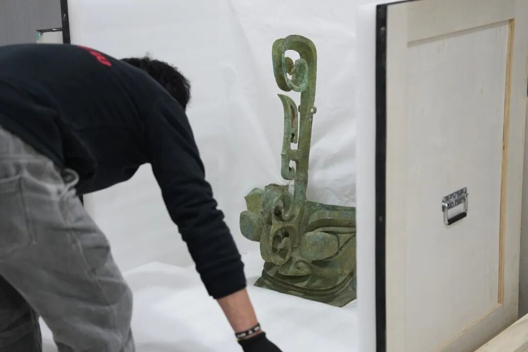 为了让这些文物平安抵达,三星堆文物保护团队做足了功课。出发前,每一件文物都完成了细致的“全身体检”,安全评估、状况记录一丝不苟,严格履行借展流程,确保“身体条件”适配长途旅行。